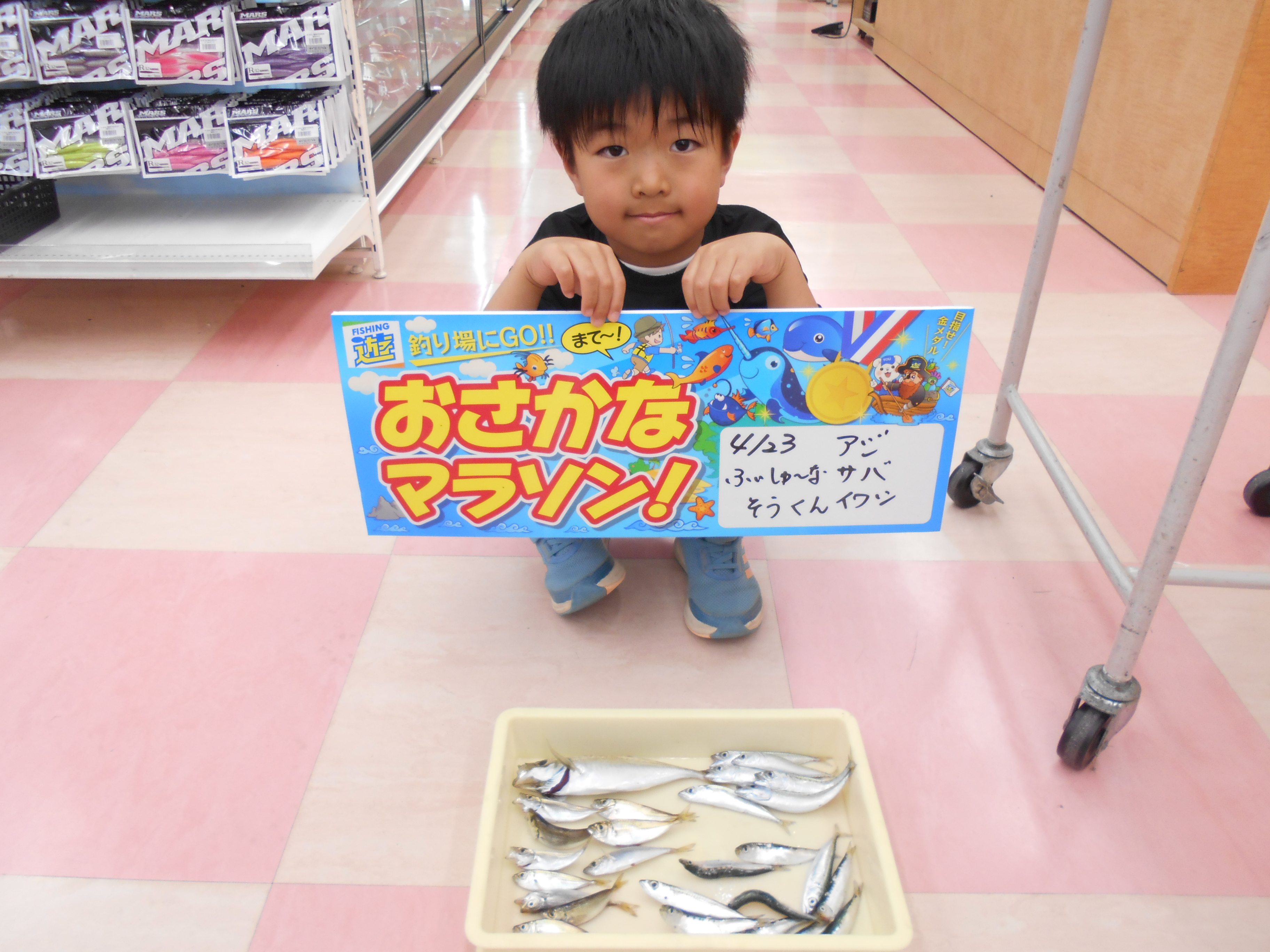 お魚マラソンのお持込みありました♪4月23日、そうくんのふぃしゅーなの釣果です。