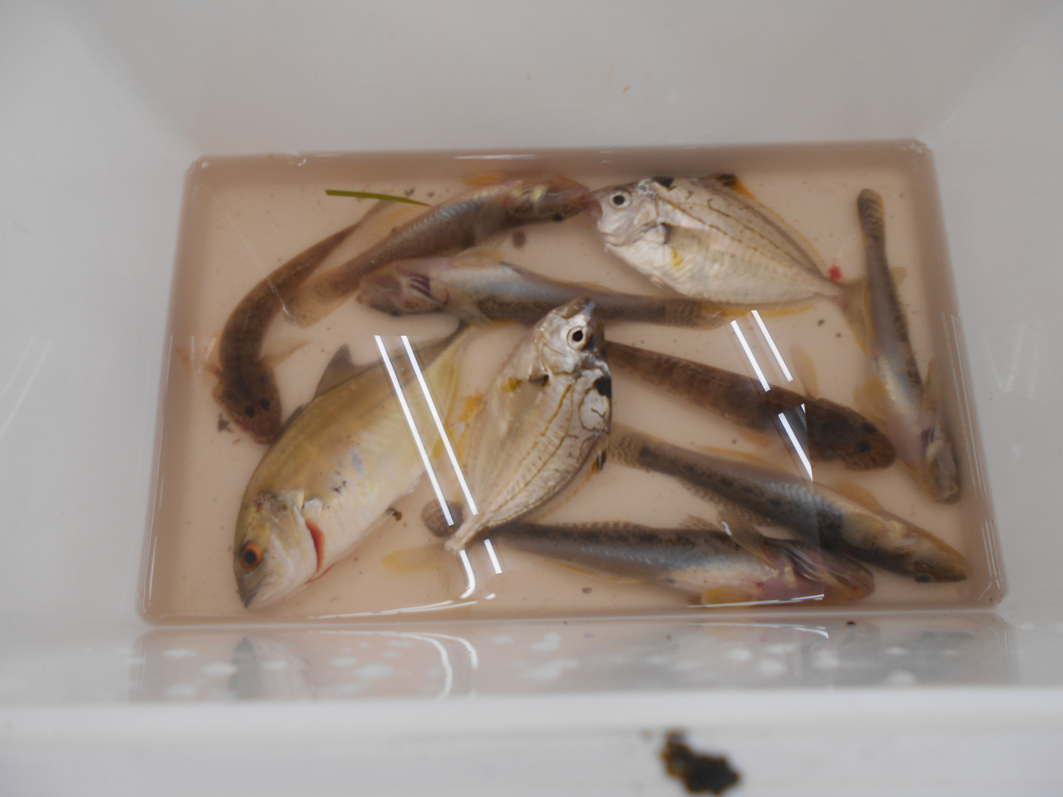おさかな博士のりく君が夕方の釣果を見せてくれました♪今日は木屋川でハゼ狙い!夕方2時間30分で本命の良型ハゼ7匹、ヒイラギ、メッキなど釣ってきました!さすがですね♪また釣りにいったら釣果を見せに来てね。