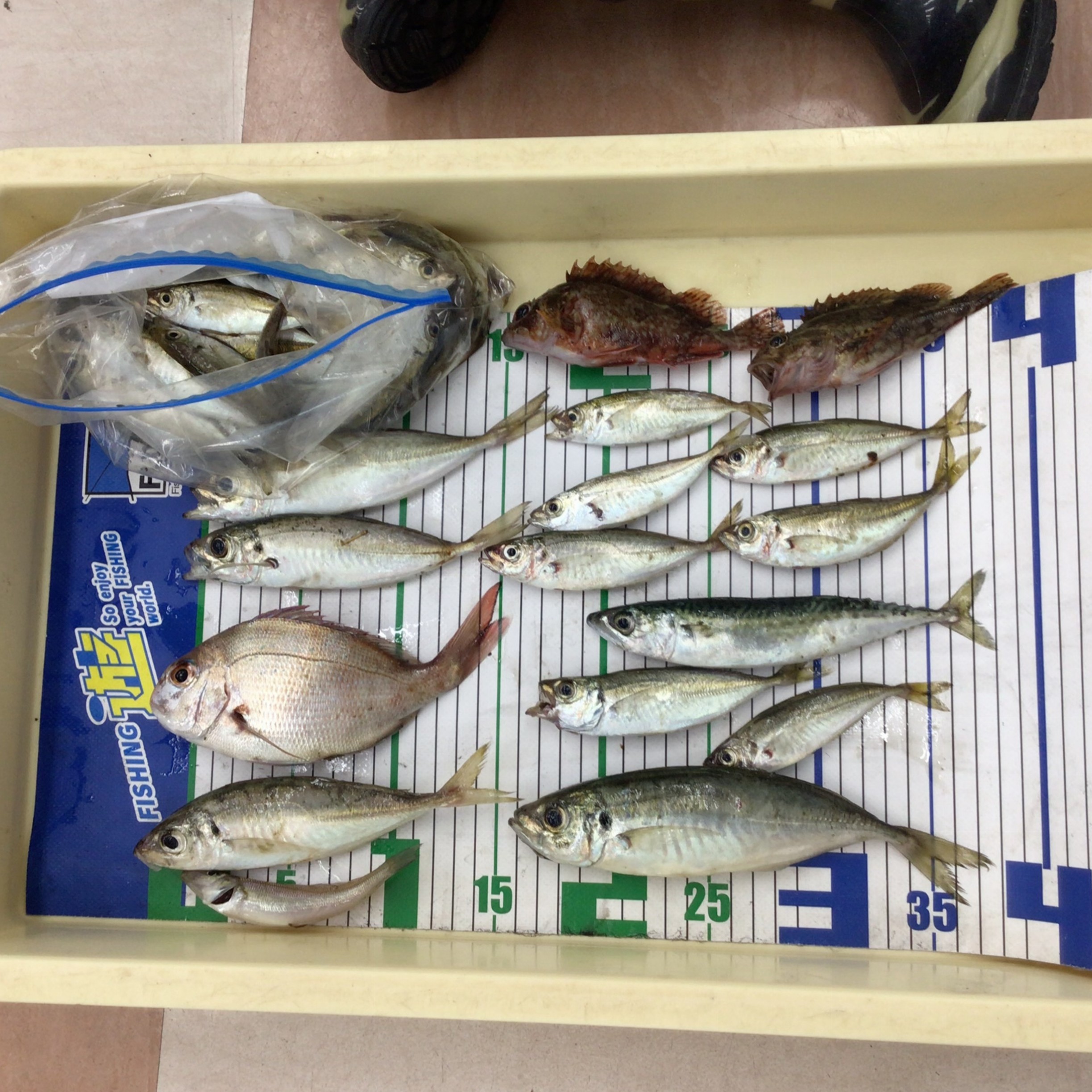 カイトくんがサビキ釣りと投げ釣りでアジ大漁、サバ、カサゴ、チャリコ、キスの釣果!