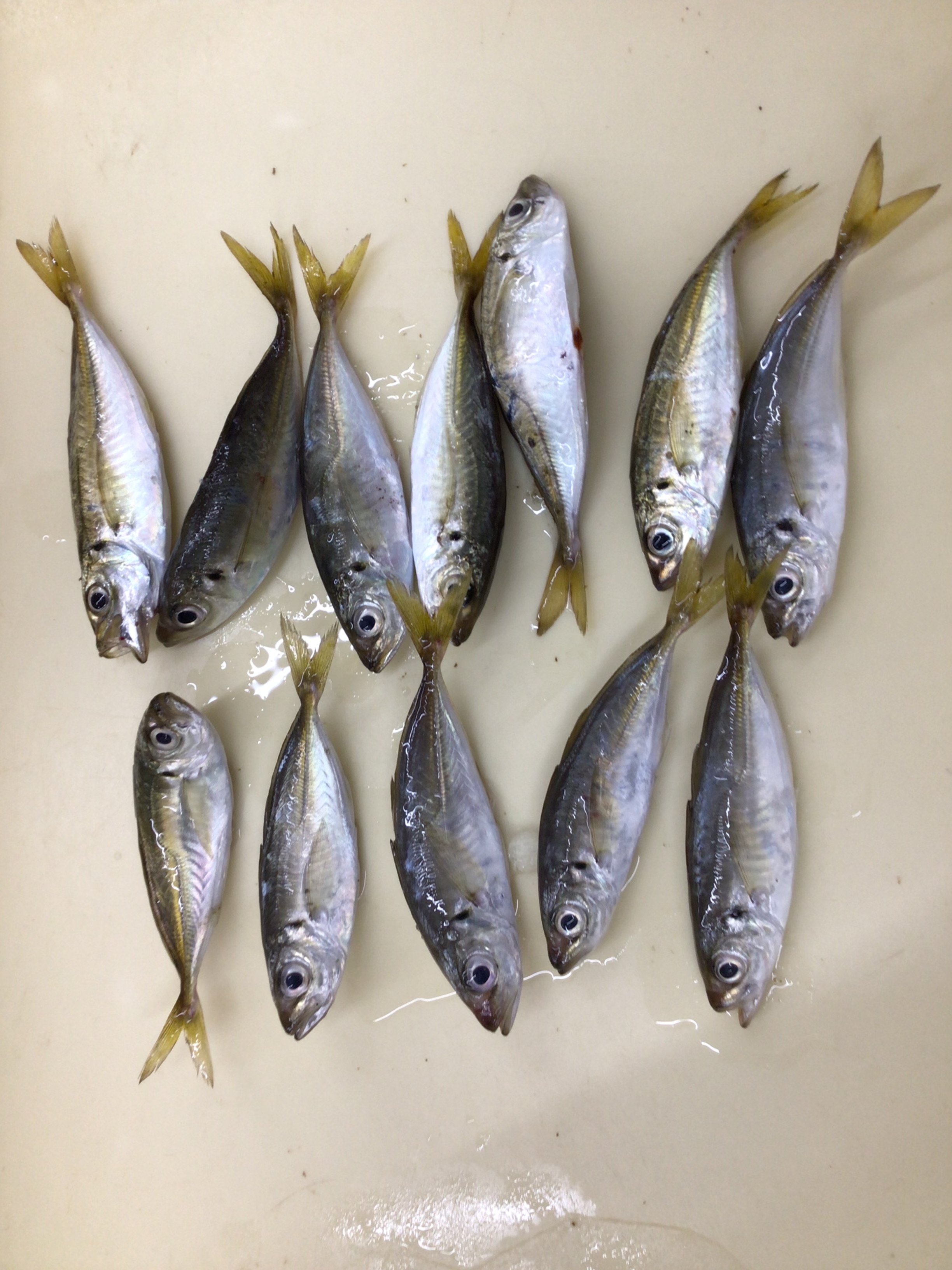 お父さんと3人で、朝4時半からサビキ釣りでアジを釣りました。