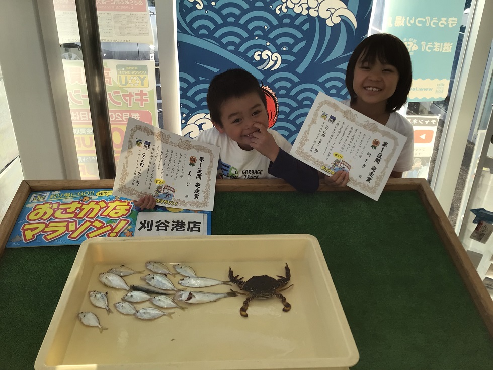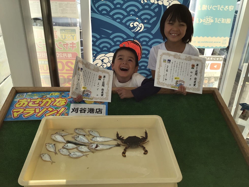 みさきちゃん、えいじ君が碧南海釣り公園でヒイラギ、サッパ、カサゴ、ワタリガニの釣果でした!