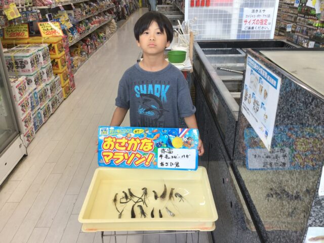 ひなた君、あさひ君が弥冨の公園で手長エビを