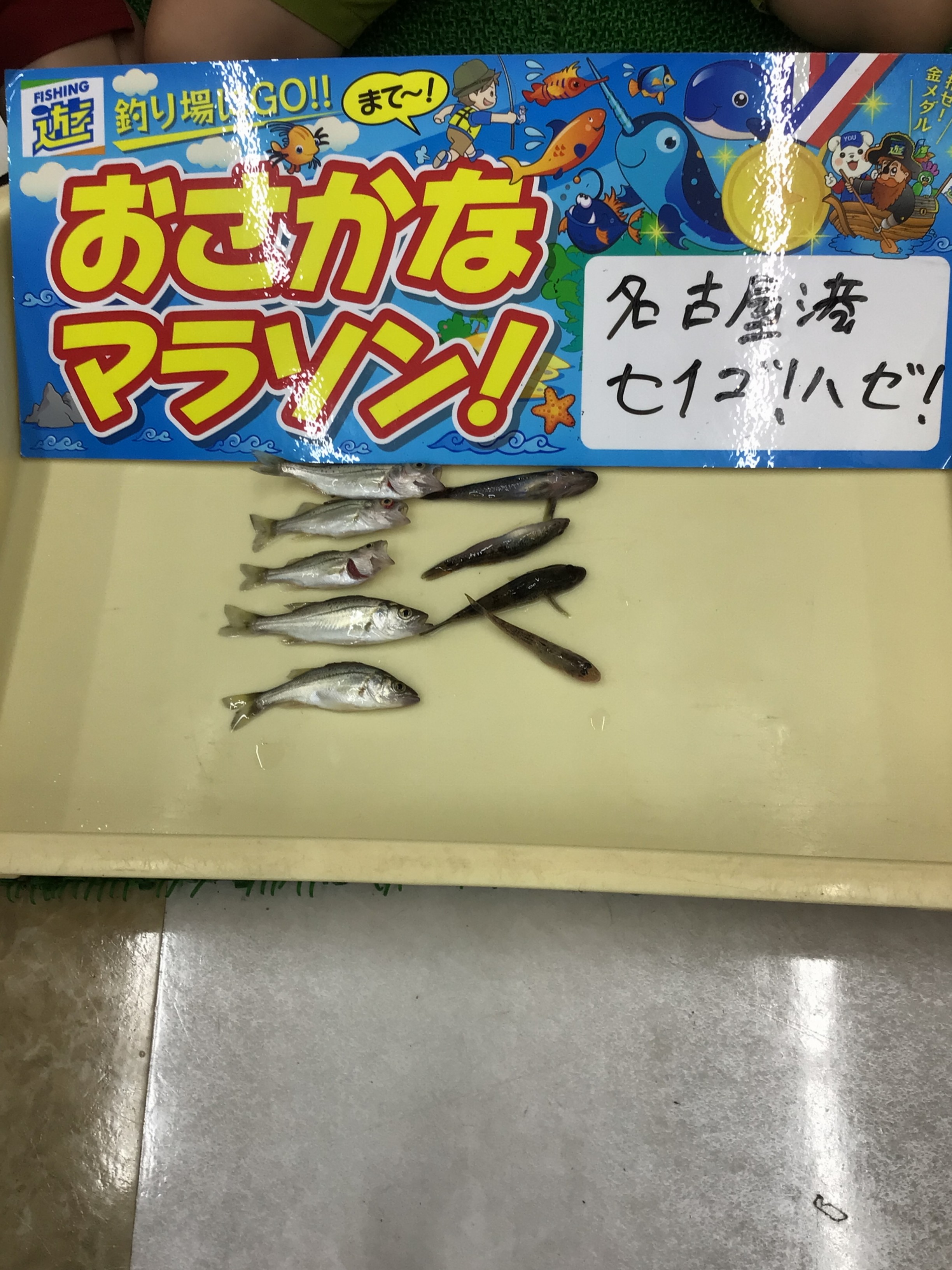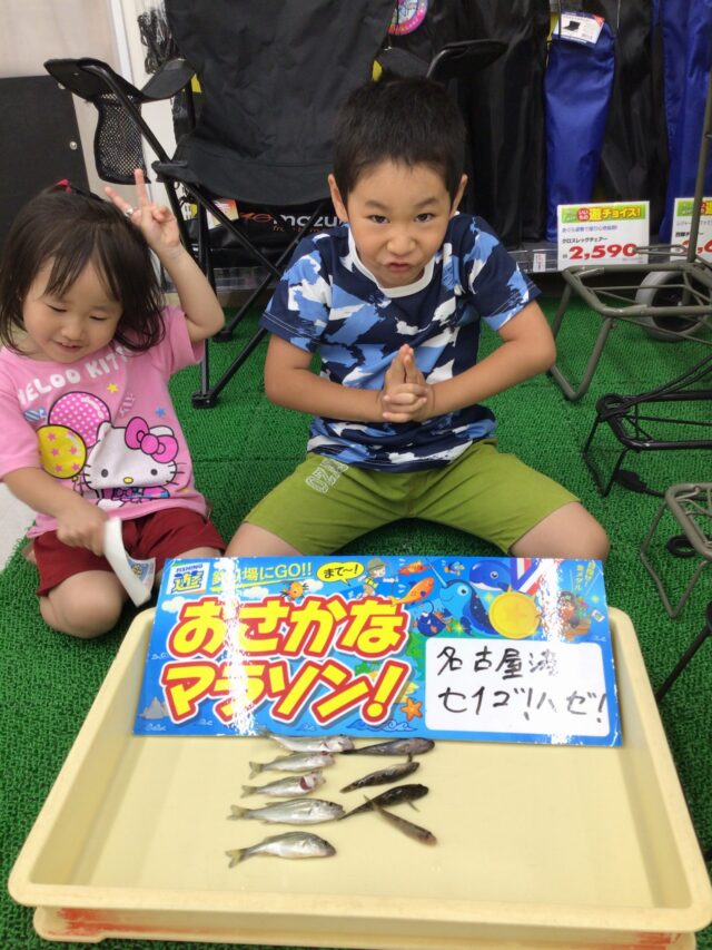 名古屋港、稲永公園にてとうしろうくんとりのちゃんがハゼとセイゴを釣りあげました!