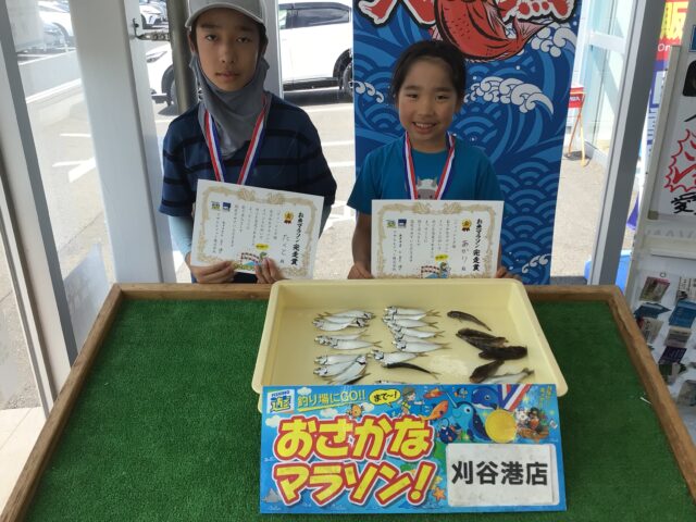 おさかなマラソンのお持ち込みです!碧南海釣り公園でサッパ、ハゼ、セイゴの3魚種達成♪更にスタンプ10個で金メダル到達です♪おめでとうございます!2周目も頑張ってくださいね♪