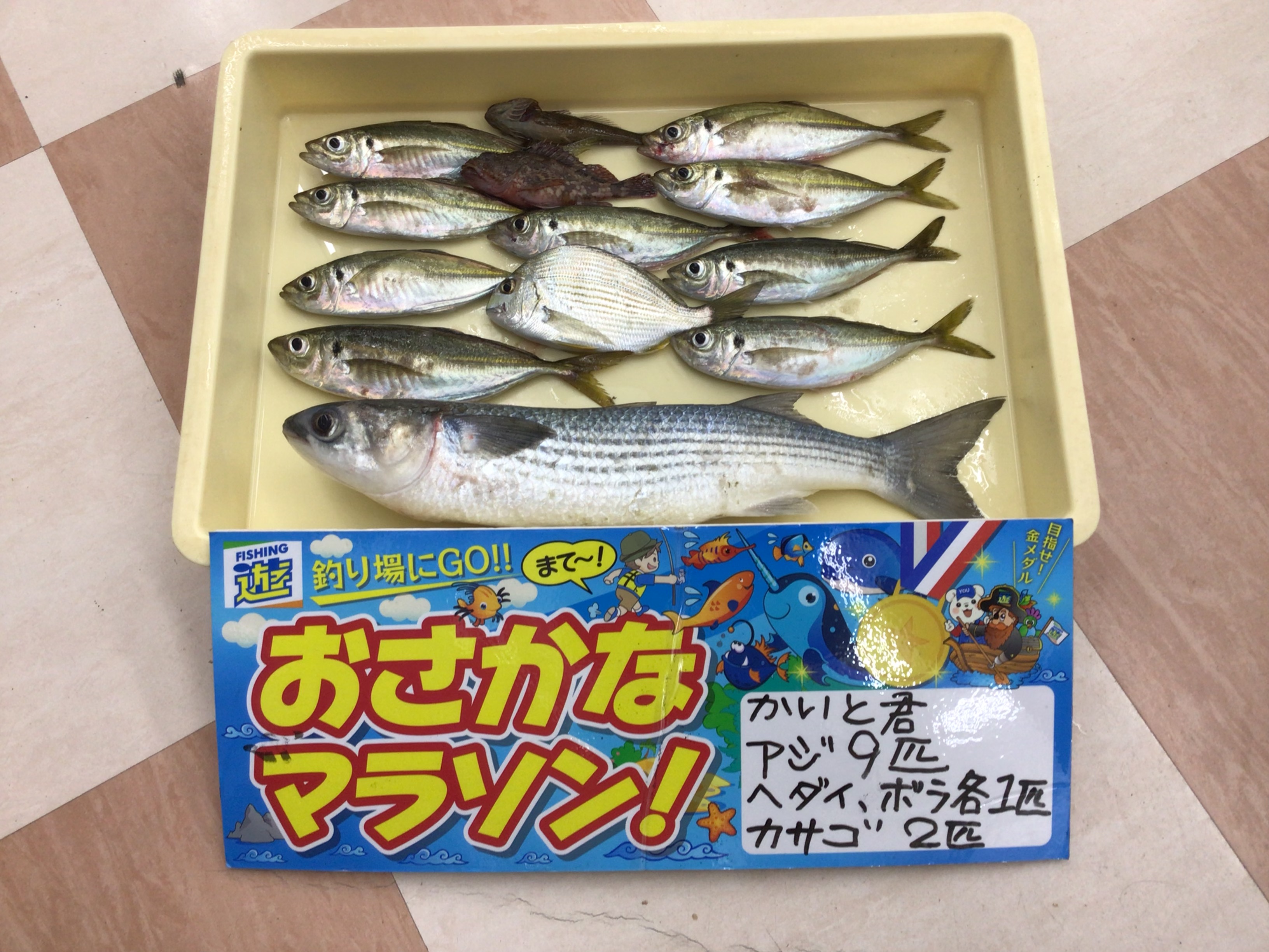 そんななかでも良型のアジ25cmを頭に9匹、他にも49cmのボラや