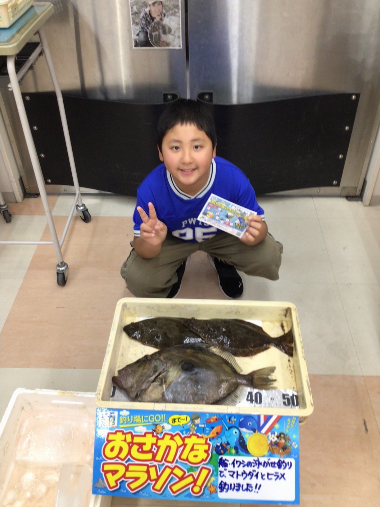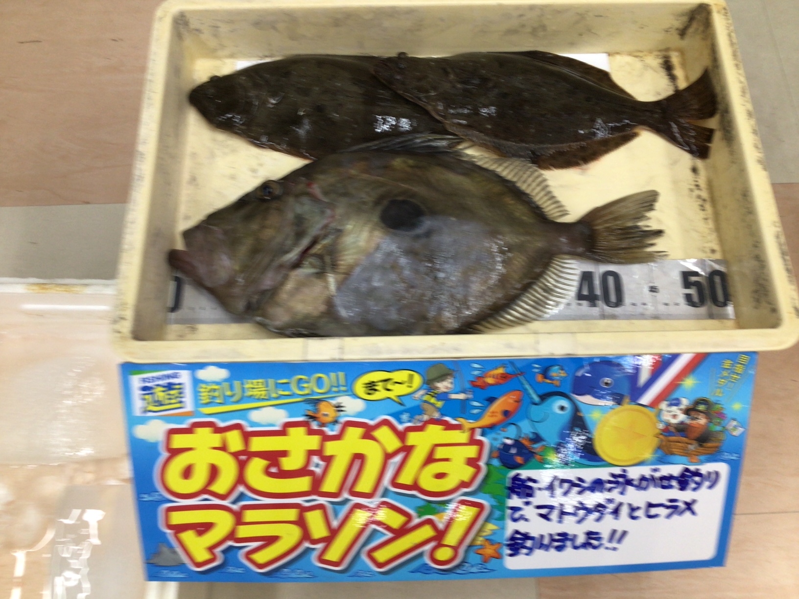 毎度おなじみのこうすけ名人が釣果報告に来てくれました☆彡立派なマトウダイとヒラメ2枚☆彡いやいや今夜はごちそうですな(^^♪こうすけ名人おめでと~(≧▽≦)☆彡