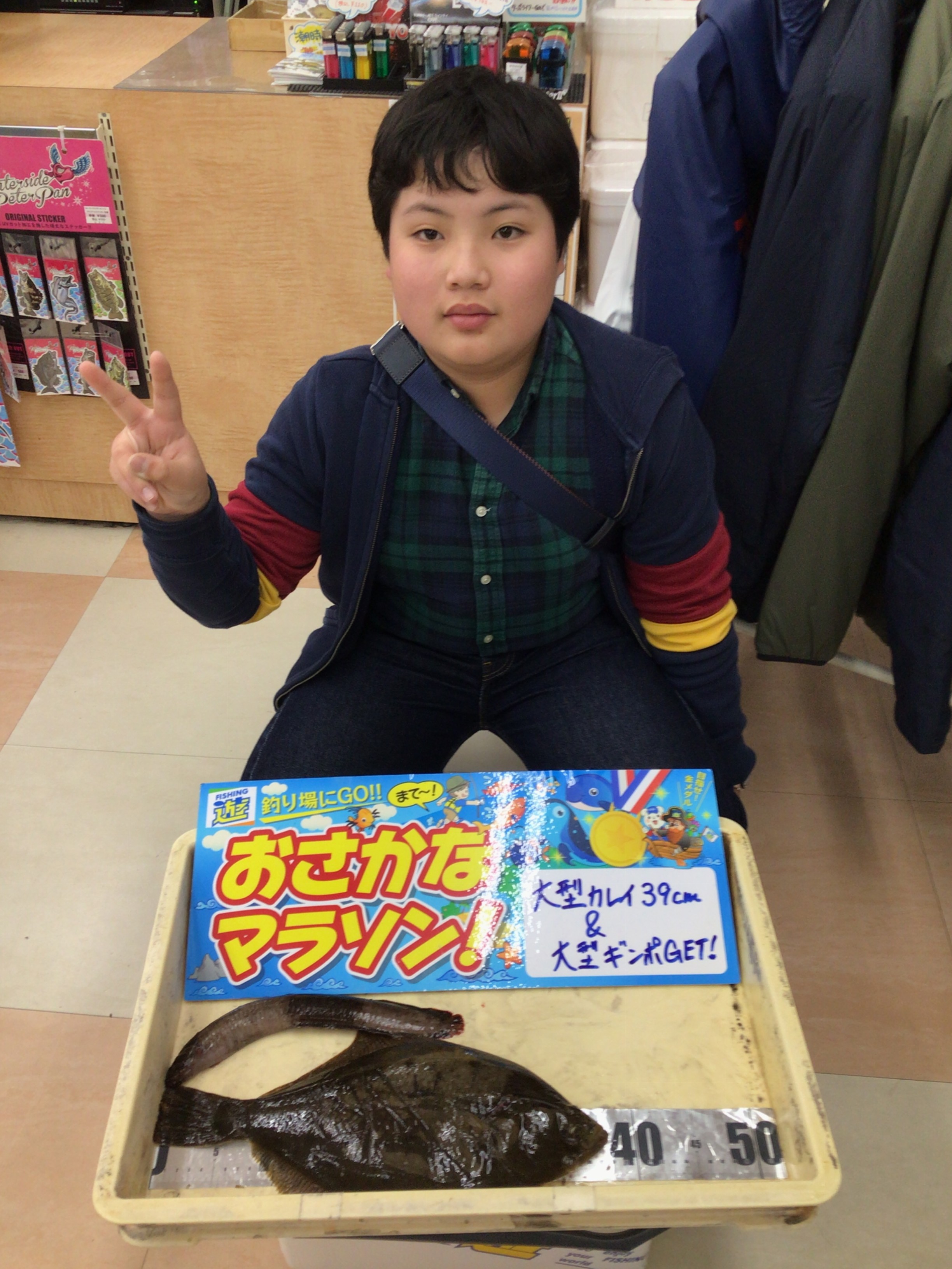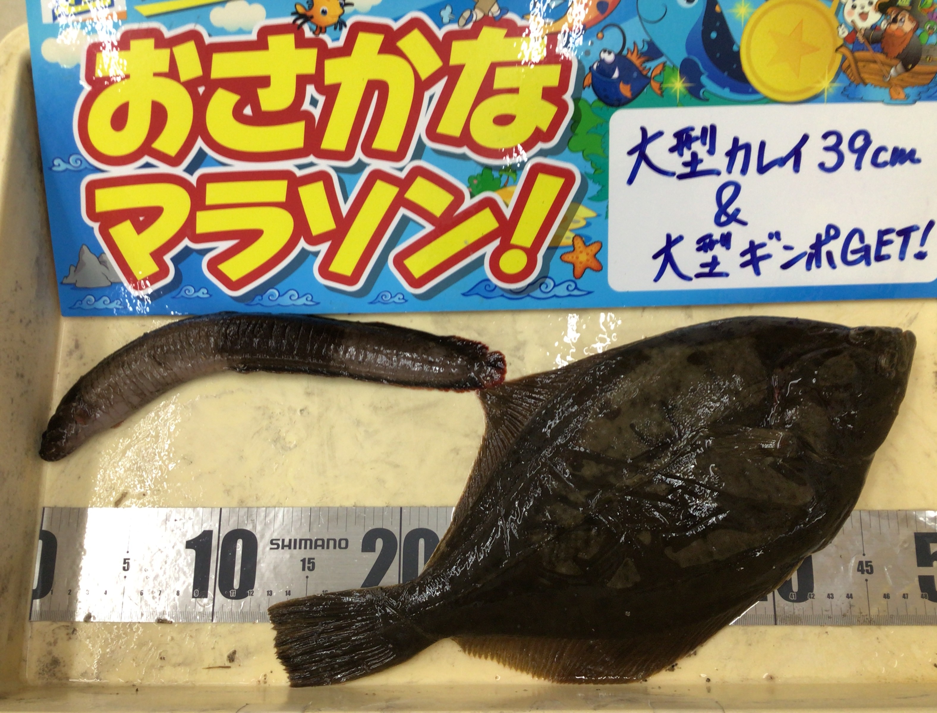 寒い中、石川県七尾湾で良型の肉厚カレイと尺に迫る巨大ギンポを釣ってきてくれました。