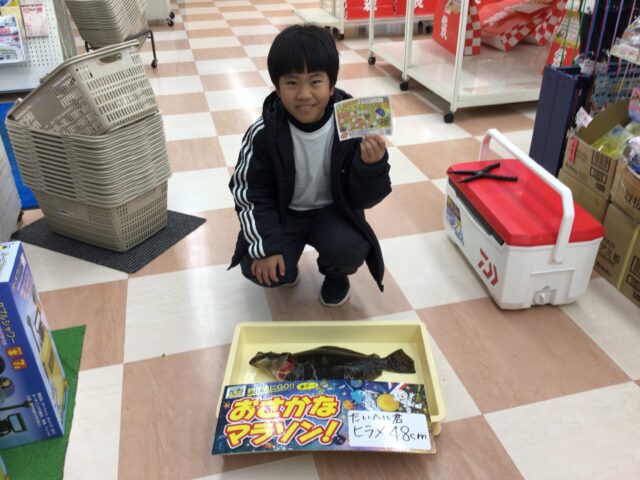 掛かった魚は48cmのヒラメでした‼️寒さに負けず頑張りました♪