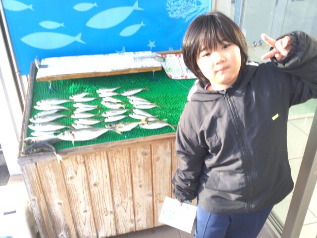 ひなちゃん、志摩方面の堤防にて、アジ32センチ頭に爆釣! お見事です❗️