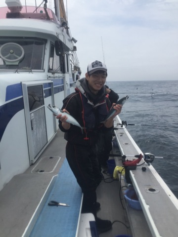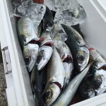 大山沖のアジサバが好調とのことで、愛知県のメンバー総勢13名で、石川丸さんのアジサバコースに行ってきました。釣り方は5本~6本針のサビキ釣りです。ロケットカゴとオモリ80号は一つづつレンタルがあるので、指定の物を使用ですが、予備は必ず持って行ってください。無くすと追加料金になります。大山沖のポイントまで1時間20分ほど走るので、出船は5:20分と早目です。ポイントは70mラインで、この日のサバの棚は40m前後でした、仕掛けを投入して、コマセを振って竿1本分棚を上げる。この繰り返しで、船長の指示棚を探ります。すぐにサバの小気味よいアタリがあります。サバも40cmを超えるものも多く良く引いて楽しませてくれます。あっという間にクーラーが満タン状態です。船のサビキ釣りは初めてのメンバーもいましたが、全員入れ食い状態です。サバは30分間隔くらいでやる気がある時とない時が交互にきますので、やる気のある時は釣りに集中して、ないときは釣った魚を締めておくと良いです。出来るだけ早く締めて、おいしく食べましょう!!残り一時間になったところで、最近あまり良くなかったアジのポイントへ行く事に!この日はアジの機嫌も良く、船中ポツポツ上がります。アジは底から3mを狙いました。お土産も沢山釣れて良い釣行となりました!!これからはイサキもスタートしていますので、師崎の船釣りに是非行ってみて下さい。