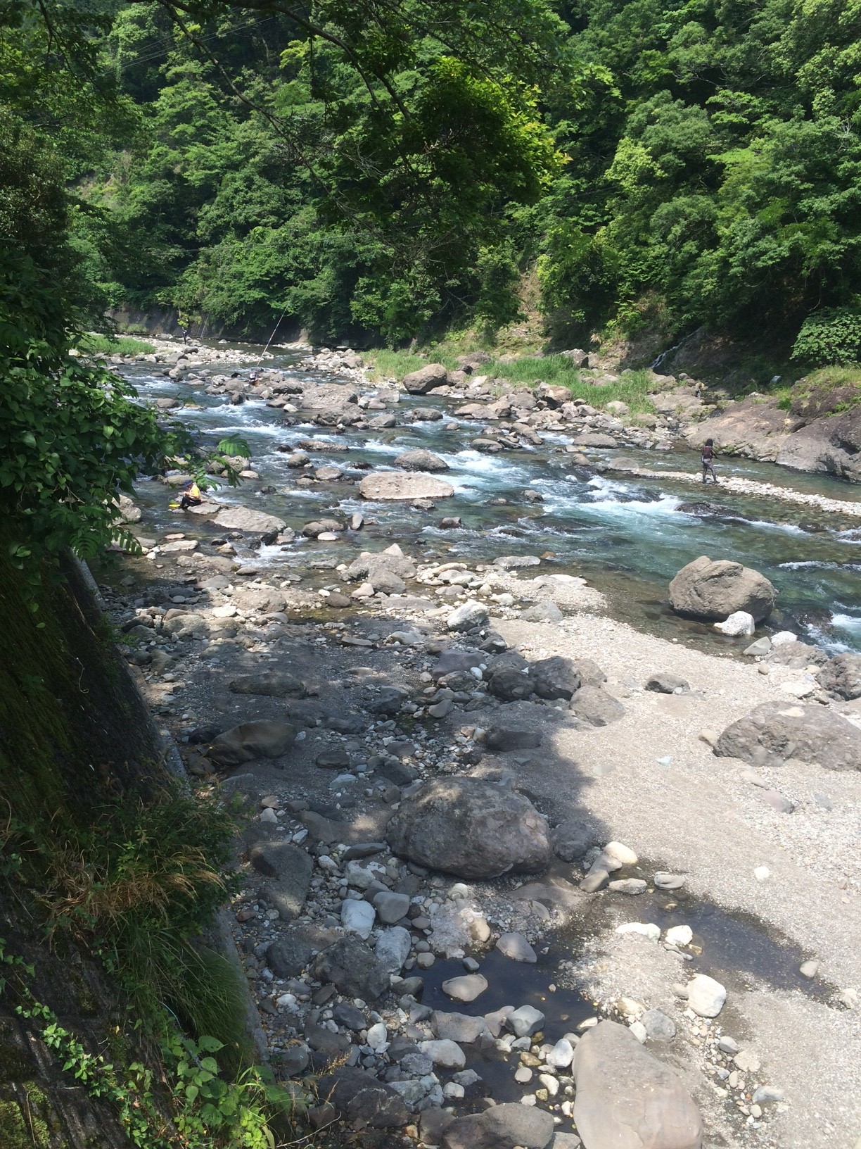 5月20日に鮎釣りが解禁した興津川に、初釣りに行って来ました!解禁日の釣果は例年並みと良い情報が流れていたのですが・・・。まずはポイント観察。釣れていると言われているポイントはどこも人がいっぱい。でもその割には竿は曲がっていない。元気のいい鮎は既に抜かれてしまっている感じ。5日目だからしかたないかな。のんびり釣りをしたいので人の少なそうな、でも少しは鮎が顔を見せてくれそうなポイントで竿を出すことに。瀬では掛かりません。ちょっと水深があり、瀬でもなく、淵でもないようなところをゆっくり泳がしていると目印がピクッ!初鮎ゲット!でも小さい。オトリを入替え、泳がしますが・・・。流れに乗って下流へ・・・。あとが続きません。せっかく鮎が掛ってもポロリ・・・。4時過ぎ、寒くなって納竿しました。結果は・・・、3匹。まだまだ修行が必要です。