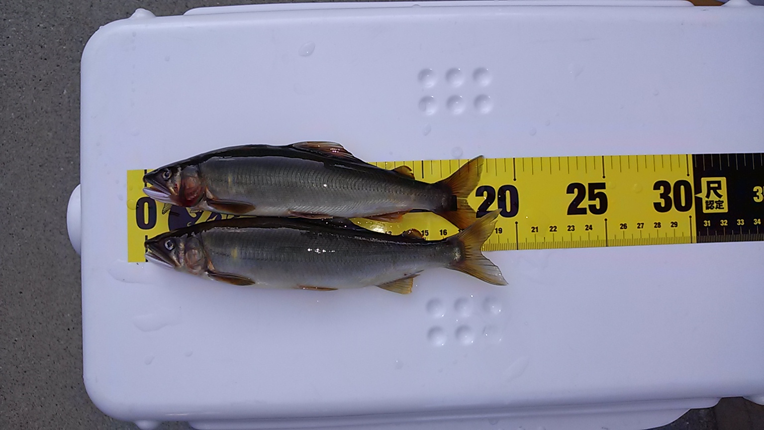 6月1日は各地の鮎解禁が多いですが、私のホームグラウンド!?宮川下流の解禁ということで行ってきました!AM5:30にK氏と合流し上の方に行こうということでポイントを回るが人が多し!ということで人の少ない田口橋に!先行者1人!昨年の解禁日と同じポイント!瀬肩を見ると型は小さいが鮎はいっぱい!!これは数は取れるか??6:30分釣り開始!それにしても寒い・・・。天候は曇り・・・。日が早く出てほしい!久々の鮎釣り!瀬肩~釣って行くが・・・ピクリとも変化なし・・・。このポイントで3時間・・・。ケラレ1回・・・。2人で1匹・・・。9時すぎに移動を決断!下の方に行こうということで公園下の瀬に!いつも人が入っているのに空いている・・・。朝一多かった人もだいぶ少なくなって・・・。周りも厳しい様子・・・。ここでも瀬肩~入り30分!やっとガツン!ここで4連チャン!型も良い!そこから瀬に入っていくとここで6連チャン!このまま瀬で入れ掛かり?と思うも・・・その1ヵ所だけ・・・。込12匹!風も強すぎて釣りにくい・・・。移動・・・。学校下に移動!夕方の入れ掛かりを期待したが・・・。ここでは3匹・・・。お手上げです・・・。最終・・・14匹!込16匹!午後はほとんど人もおらず・・・貸切状態でした・・・。どこも厳しかったようですが、鮎はたくさん居るのは間違いなし!今後に期待です!!宮川下流は年券¥5000です!!!