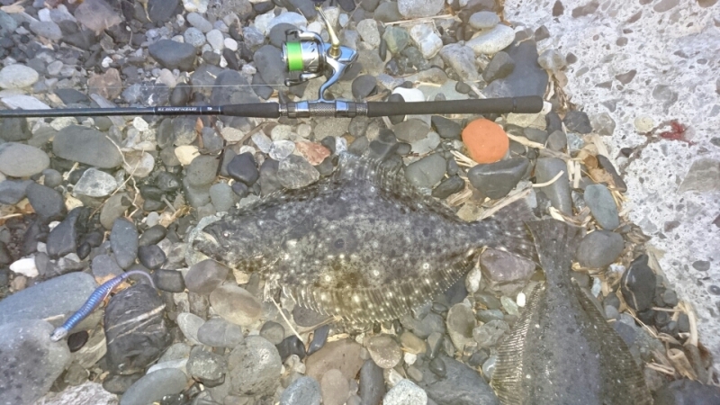 その後にリザスターで50cm位のヒラメをキャッチしました。