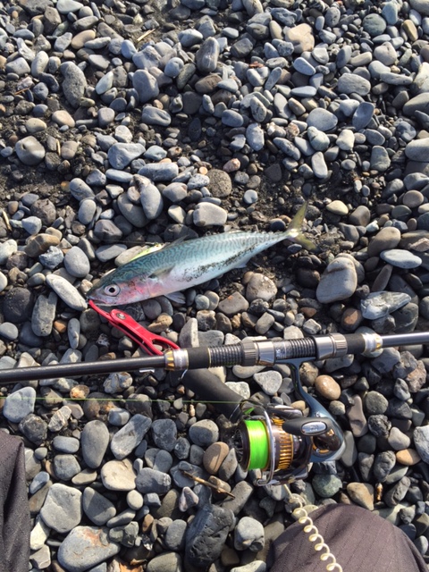 数投とバイトがありましたが乗せきれずその後も手を変え品を替え攻めますがノーバイトで完全に明るくなり諦めているといきなりサバのナブラが始まりましたがフラットが釣りたかったので少し休憩しナブラが収まってからの一投でミノーを投げると50㎝ぐらいあるサバがヒットしました。