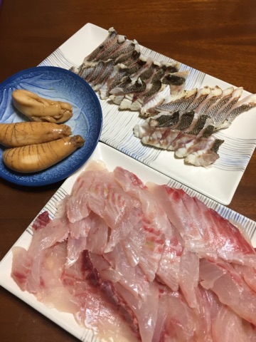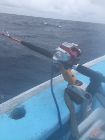 大山沖でイサキが好調ですので、おざき丸様にお世話になり行ってきました。天候が良くなく、午前中から風が吹きそうな予報で、他の船では出船していないところもあったようですが、出船してくれるとのことで気合を入れましたが、大山沖まで1時間程が40分ほどさらにかかり、伊良湖沖は荒れ模様、私もポイントに着く前に船酔いに襲われながらポイント到着、水深は60mほどのポイントで、イサキの群れは40m前後につているようで、指示棚までカゴを落として、コマセのアミエビをしゃくって出して、しばし待つ、一投目から幸先よく35cm程のイサキが釣れます!!このまま釣り続くかとおまっていましたが、私が船酔いにてダウンしてしまいました。他の方は、波も高く荒れてはいましたがよく釣れていました!!その後も終了間際まで私は釣りをしなかったので実釣時間は40分程しかやっていませんがそれでも10枚弱のイサキをGET出来ました。釣りさえできていれば・・・でも今が絶好のチャンスです皆さんも是非!!