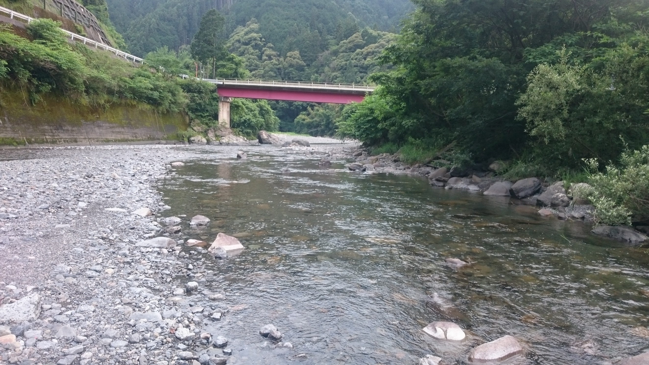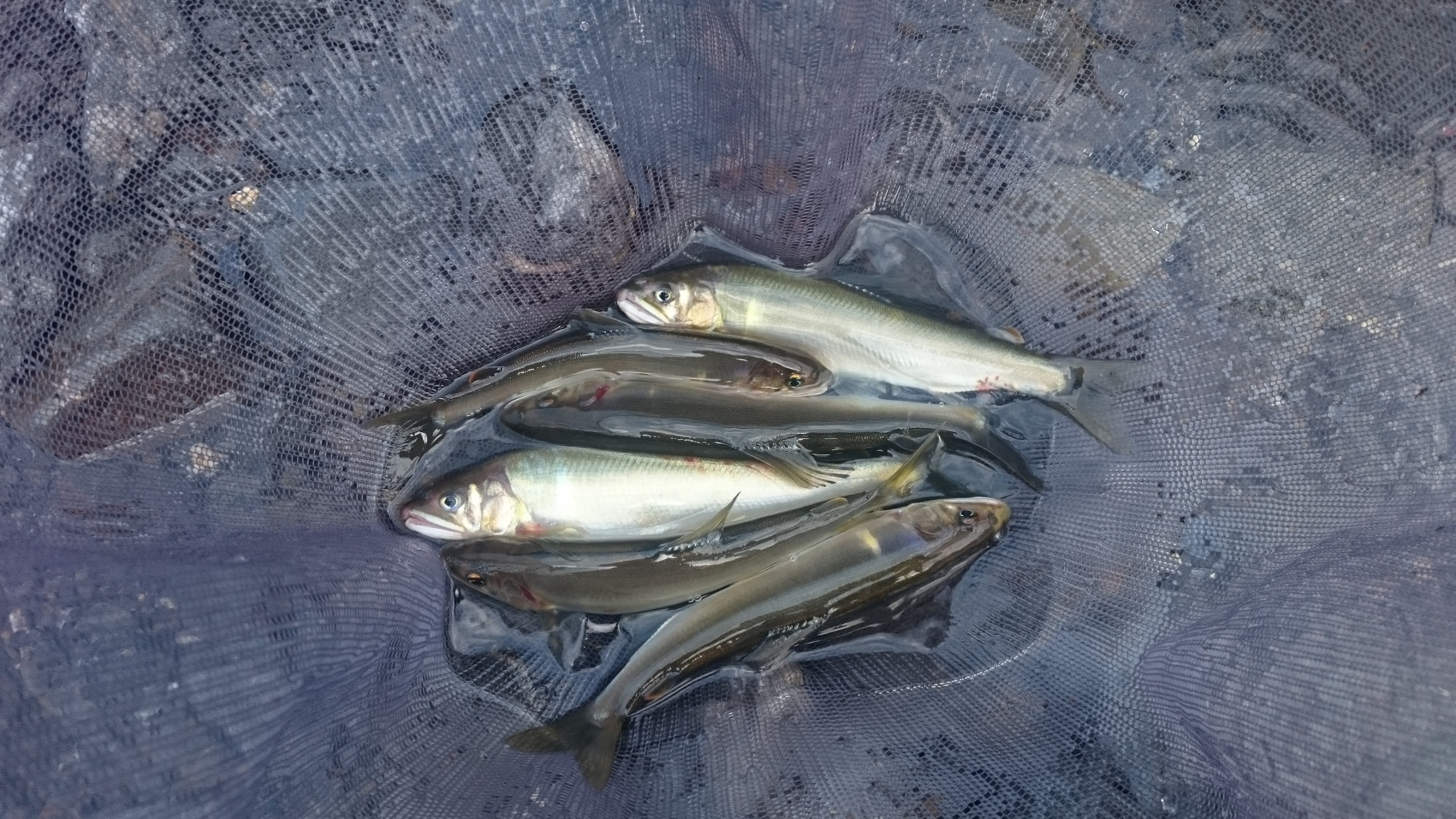 今回はいつもの藁科川に単独で行ってきました。朝から晩までみっちり修行です!362号線沿いのさおしんさんでおとりを買って9時頃現地に入りました。朝は水温が低かったのか、鮎の姿があまり見られなく、ポイントが定まりませんでした。午前中は瀬鮎狙い、午後からは水温が温まったところでトロ場の鮎を狙いました。11時近くまで何もなく、最初の1匹を釣るのにとても苦労しました。水深のある瀬に投入したときに目印がひったくられるようなアタリでヒット!17cmくらいのまずまずサイズでした。その後は小さめの1匹を追加して午前中は終了しました。午後からはコケをハムようになり、群れアユもたくさん見られるようになりました。鮎の姿を確認して、流れが緩やかな場所でサイトで狙うと1匹掛かりました。しかしその後は、おとりが元気に泳いで、群れについて行来ましたが夕方まで掛かることは無く、3匹で納竿となってしまいました。