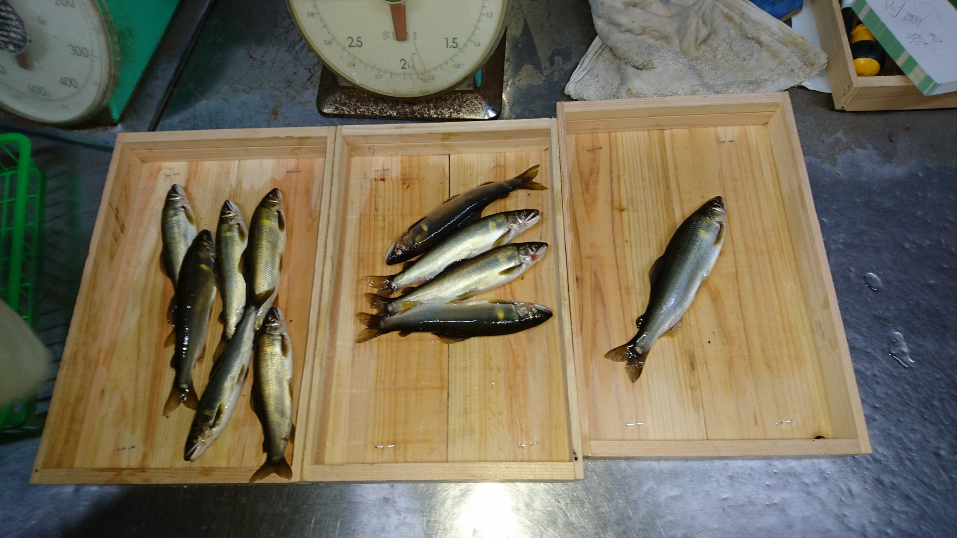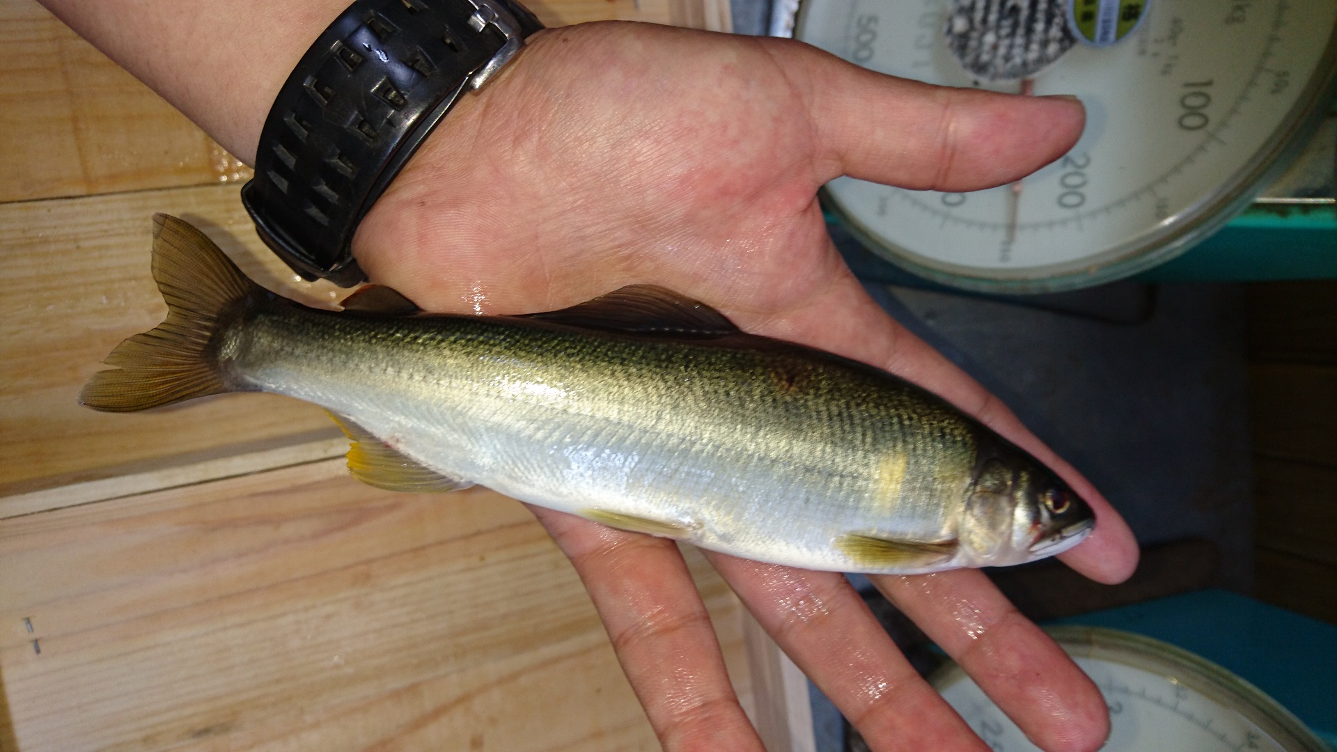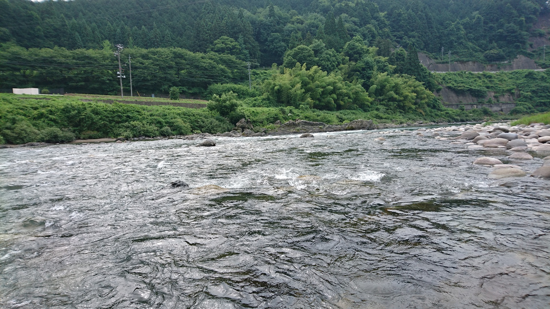 またまた長良川に行ってきました。渇水から少し回復し、ちょっとは期待したのですが、やはり美並地区は型が小さい。天然遡上のチビしか掛かりません。お昼までに5匹しか釣れず大苦戦。ひょっとして自分だけ小さいサイズしか釣れないのか?と思いしばらく竿を置き、人の釣りを見学。掛かってますがやはり型が小さい模様。仕方なしに前回良い思いをした場所へ移動。人はたくさんいましたが、急に雨が降り出し皆帰って行きます。そこから静かに泳がせていると掛かりました。型もよく90gも1匹でました。満足はしませんでしたがそれなりに楽しめました。最終15匹でした。