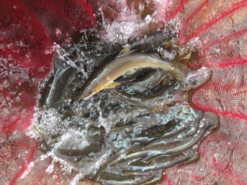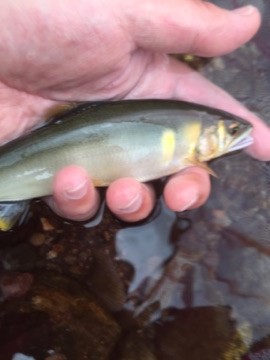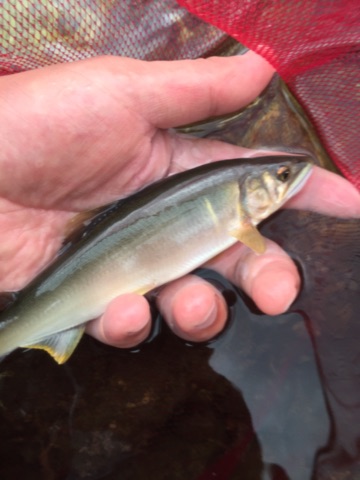 梅雨の合間で川も落ち着いてきていたので、鮎釣りに行ってきました。朝の水温は21℃平水よりやや低めの足羽川への釣行です。ポイントはいつもの池田地区に入川、朝は少し水量のある瀬落ちにオトリを泳がせるところからスタートしました。20秒ほどタテ竿で泳がせると目印が縦にブルンッ!!となったと思ったら、川下に一気に動き出します。開始そうそうに掛かります!!キャッチできたのは19cm程の元気な個体です。オトリを変えて同じポイントへ入れなおすとすぐにまたかかります!!そのまま4連荘して止まったので、少しずつポイントを移動しながら探り、時速5尾程度のペースで掛かり4時間ほどで20尾ほどかけて昼食を取り、30分ほど休憩して午後からの釣りをスタートします。他の釣り人も増えてきたので、10分ほど川を下った瀬から瀬落ち、ザラ瀬と続くポイントへ午後からの一投目もすぐに掛かります、下らせて充分にタメを作り抜くポイントを探りここぞっというところでオトリを水面から浮かせたところでポンッ・・・・身切れ・・・4連発・・・・ペースダウンしましたがその後もポツポツ掛かって、16時半ごろからは瀬に入りました、良さそうな石には追星くっきりの野鮎が付いており1時間程入れ掛かり状態になり10尾ほど追加して納竿となりました。水温も安定して良く釣れています!!少し遠いですが皆さんもどうですか?