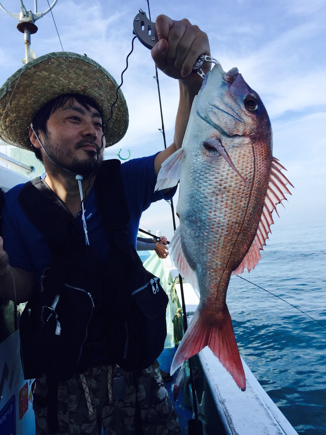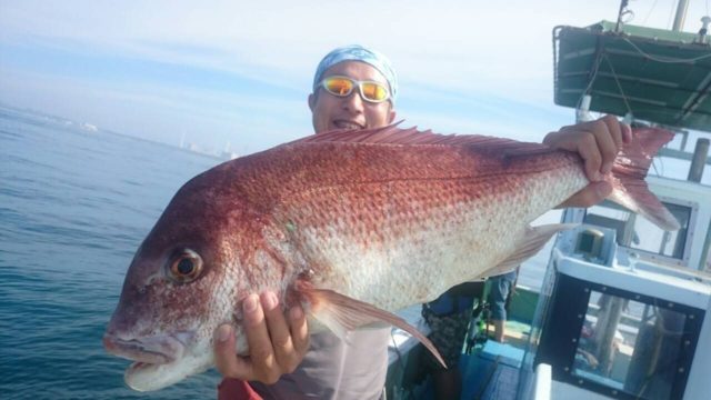 最近特に好調のタイラバゲームをしに御前崎に行って来ました。オフショア初挑戦のお客様をエスコートしての釣行です。今回の課題は2つ。①お客様にマダイを釣ってもらう事!!②お客様経営のレストランの食材確保!!!です。台風の影響で多少ウネリはあるものの釣りやすい海況、いざ竿入れと思いきやお客様は1投で船酔いダウン???です・・・。せめてお土産をとプレッシャーがかかりますが、1投目からアタリ!でも乗らず・・・。アタリは多いのですが何か変。犯人はイサキでした。しかし開始早々に本命ヒット!30cmそこそこのマダイでしたがとりあえずは安心、さらにサイズアップを狙いスピニングタックルに変更広範囲を素早く探る作戦に変更。すると・・・、見事に作戦がはまりガツンと強烈な引き!!!シャークアタックにドキドキしながら慎重にファイト。あがってきたのは72cm、5kg本命のマダイでした。この時点で大満足してましたがさらに入れ掛かっての3連荘。その最中船酔いダウンのお客様が復活!船長の手厚いレクチャーを受けながら一緒に波に乗ります。記念すべきファーストフィッシュは30cm程のかわいいサイズでしたが、そのあとかける魚は良型ばかり!!初挑戦なるも納竿までにマダイ5枚とすばらしい結果に!!!自分はそのあとにもプチ入れ掛かりもありリリースサイズも釣れたものの、納竿2時間前にマダイ8枚!!!となると狙うはツ抜け!!!しかし殺気が出過ぎて結果は9枚でした。他、イサキも入れ食い、カサゴも交じって大漁!!!お客様の今回のミッション、ファーストフィッシュと食材確保はみごとコンプリートしていました!!!お見事です。日ムラはありますが大ダイ、数も出てます。行くなら今がチャンスです。それから広範囲に探れるスピニングタックル、持って行った方がいいですよ~!
