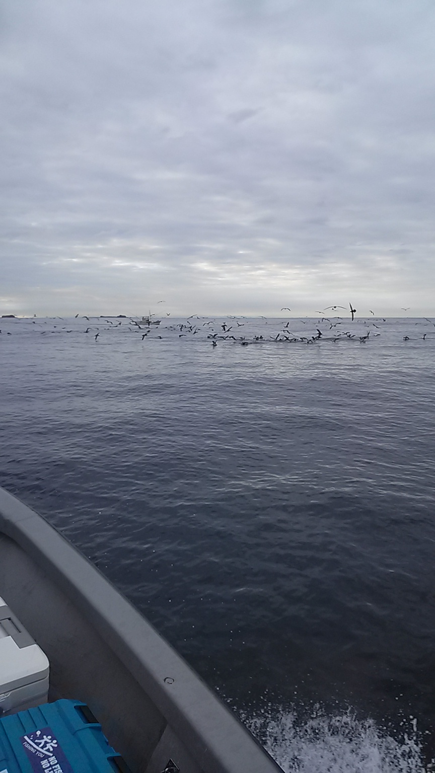 志摩沖にNさん艇にて出船!!朝5:00出船!!フラッシュジギングオンリー!!!朝一にカマスポイントでフラッシュ!!魚探反応ありですが・・・。難しい・・・。そこで沖でナブラ!!直行!!すぐにジグをちょいキャスト!フォールでラインが走ります!小サバのダブルヒット・・・。ですが・・・両隣ではアラハダ&イサキ!!ここで少し入れ食いタイム!!!アラハダが!!デカスギル!!!45cmぐらい!!!鳥もなんだかんだでずっと騒がしく雰囲気はあります!!少しして食いも落ち・・・沖に移動!シャローエリアで横引きフラッシュ!!すぐに良型イサキGET!!隣のおじさんはオジサンを釣り大笑い!!でもアタリが続かず朝一のポイントに戻り魚探反応で釣っているとまた時合い到来!!!ここでK氏が大アジ2匹!この日最大のイサキ!!アジは45㎝はありそう!!うらやましい!!私も狙うが・・・・・。そして昼に終了いたしました!!!この日の釣果は、イサキ6匹・大アジ2匹・サバ・アラハダ・カマス・メバル・オジサン・カサゴ・アナハゼ・エソなど色々釣れて楽しい釣行でした!!この日は、オーシャンフラッシュ30g・ブルピンがヒットカラー!!それにしてもよく釣れるジグです!!!