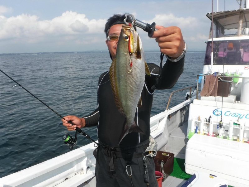 またまた志摩和具のワンステップさんに釣行。今回はイサキの食い気のある大王方面へ、水深20m前後のポイント、ルアーはオーシャンフラッシュ30gのアカキンやブルーピンクを使用しました。水深に応じ10~15秒のカウントダウンを取りジグをホール、ソフトにアクションしてまた、ホールの繰り返し、この日はイサキのサイズが良く最大39.5cmです。丸々として立派なイサキでした。ホール中のアタリが多く、ラインの出るスピードが変わります。この日はイサキにタイも良型で、ライトなタックルでのやり取りを満喫する事が出来ました。ワンステップさんはイサキを専門で狙い釣らせてくれるオススメの船宿さんです。