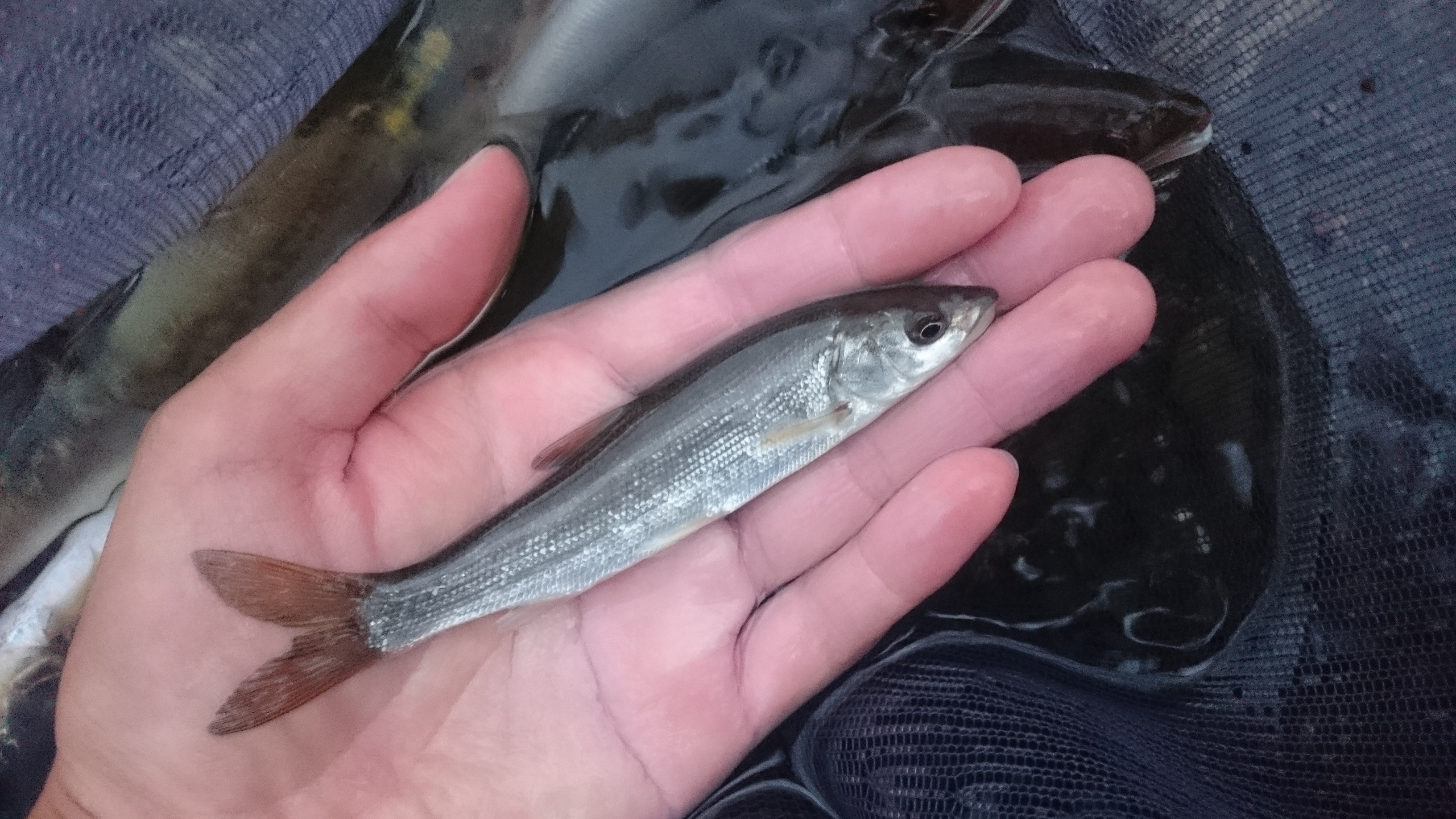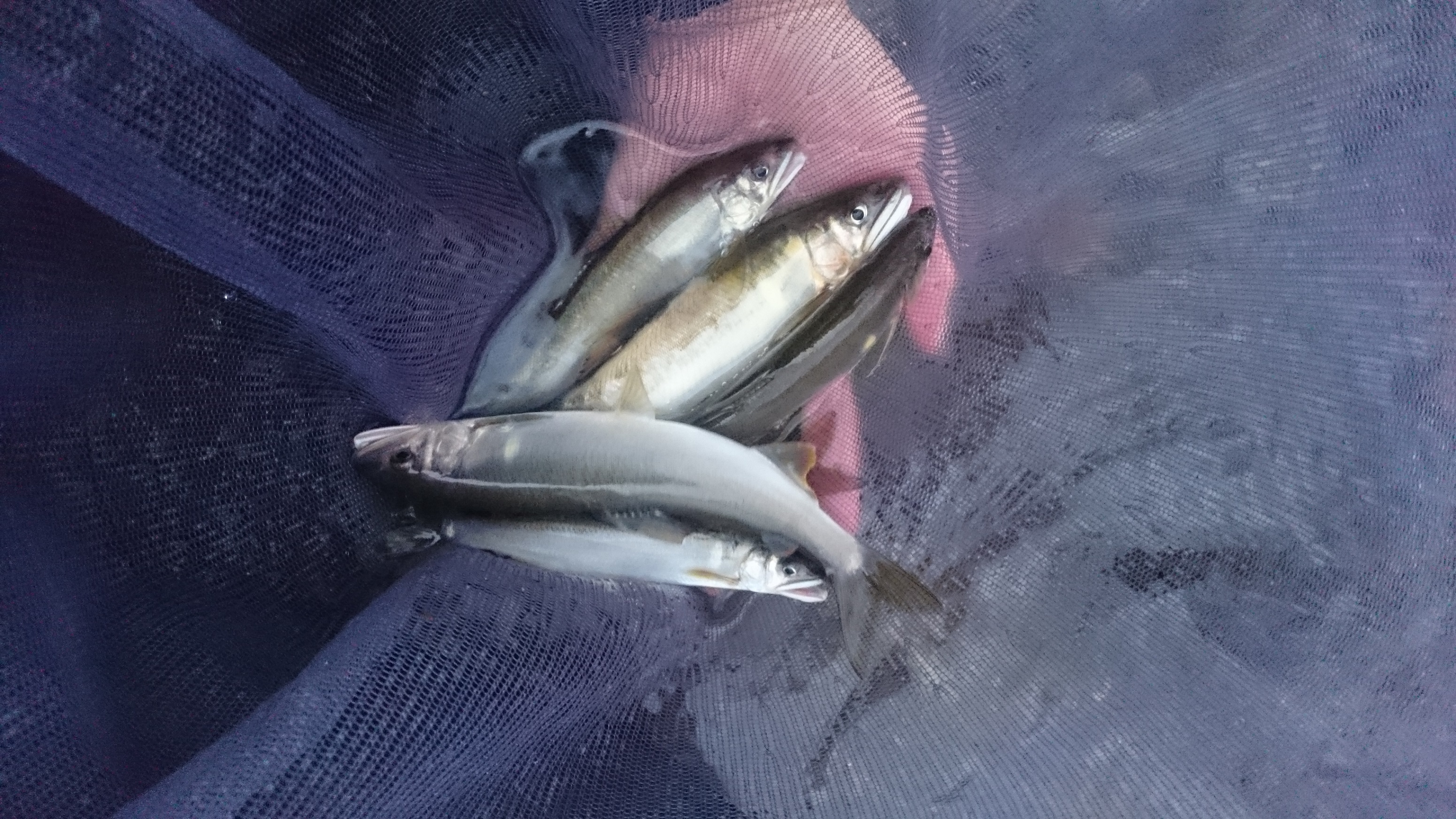 今回も富沢周辺に入りました。午後から釣行だったので、目標5匹にし開始。駐車場から上流に歩いて行きました。前回連続ヒットしたヨレ場から始めました。水が減っていて、流れが少し変わっていました。おとりは元気良く泳ぎましたが、外道のハヤが掛かっただけでした。日が照っていたので、シェードになっている瀬脇がいいのかなと思い、上りながら瀬脇を攻めました。アタリは解らなかったものの目印が変な動きをしていたので、竿をきいてみると、掛かってた!慎重にランディング。いつもながら最初の一匹に苦戦。今回も1時間半沈黙ののちのヒットでした。ボウズを免れたことで安心してしまったのか、最初のおとり交換で釣った野鮎を逃がしてしまいました。トホホ・・・。気を取り直して、、別のおとりに交換。今度は流心に入れてやる気のある鮎を狙います。すると、ギューンと下流に流されました!大きい!重いです!20cmくらいの良型が掛かりました。その後、6時頃まで粘りましたが、18cm、14cmを2匹追加のみで納竿しました。