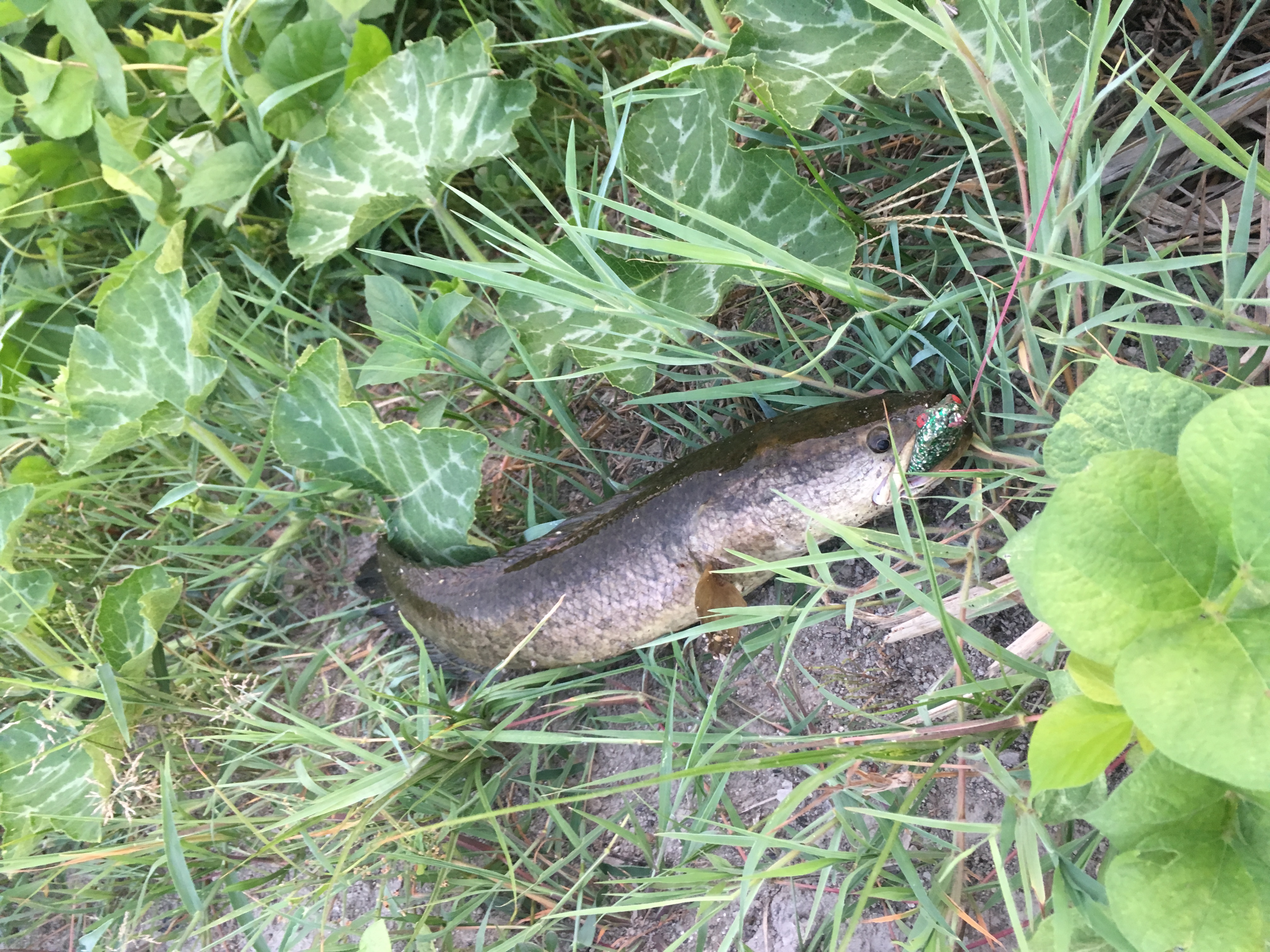 で水深の浅いクリークなので、日中は一気に食いが落ちる。なので朝一勝負です。