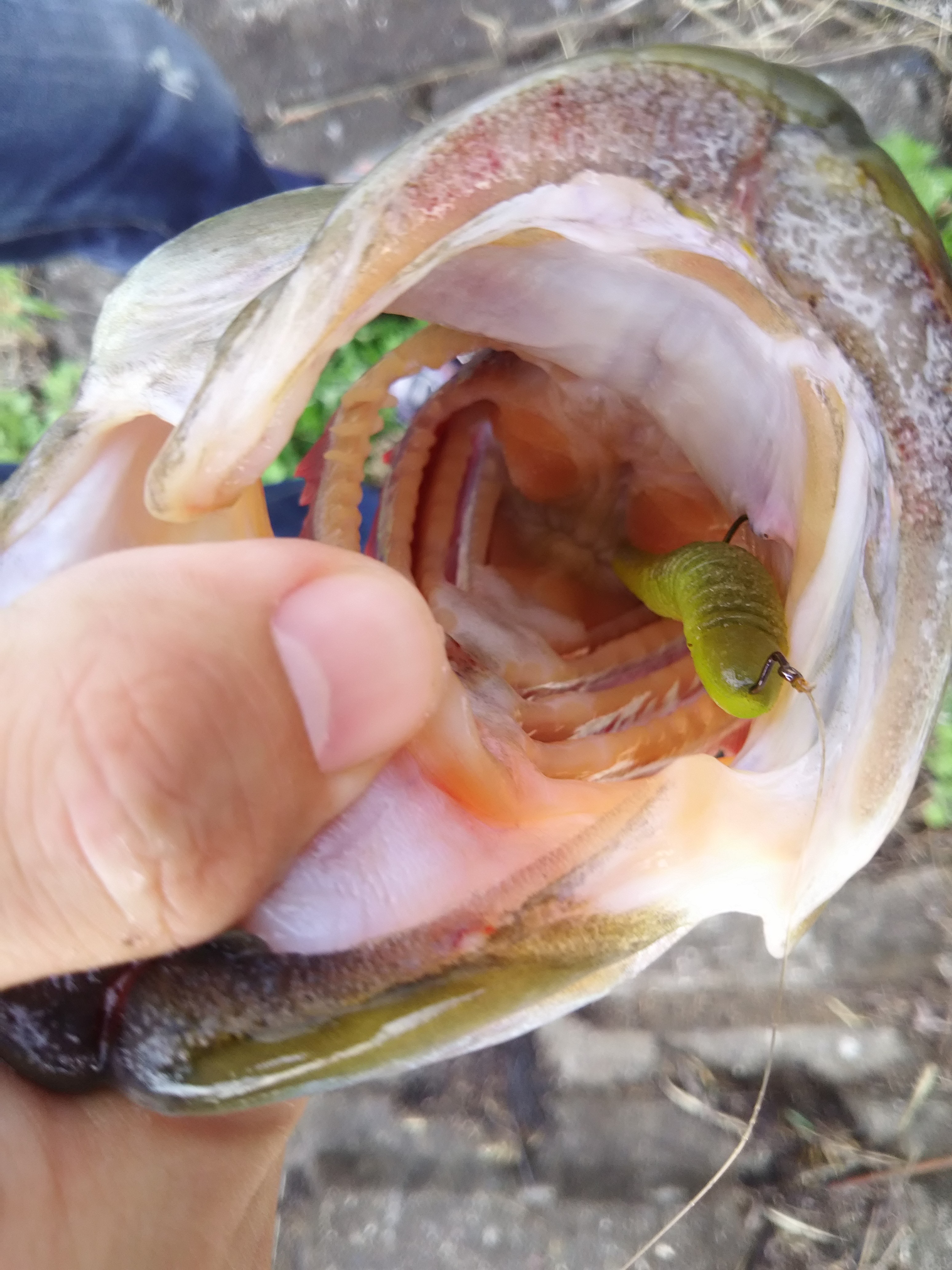 川の水色を確認しながら上流を目指すと、最上流部の少し手前で水の色が良くなっているポイントを発見。イナッコも大量にいて、ボイルも確認できた。「魚はいる」ということでここで竿を出すことにします。30分ほどして佐藤君の竿が大きく曲がっています。無事ランディングできたのは40cm超えの良型のキロフィッシュ。『スイングインパクト3in+ノーシンカー』で釣れたようです。メインベイトがおそらく『小ギル』。カラーもサイズも動きもマッチ・ザ・ベイト!!しかし、後が続かずこの日はこの1尾で終了。今回の釣行で、ポイント選択の大切さとベイトの動きを観察する事の重要さを再確認しました。