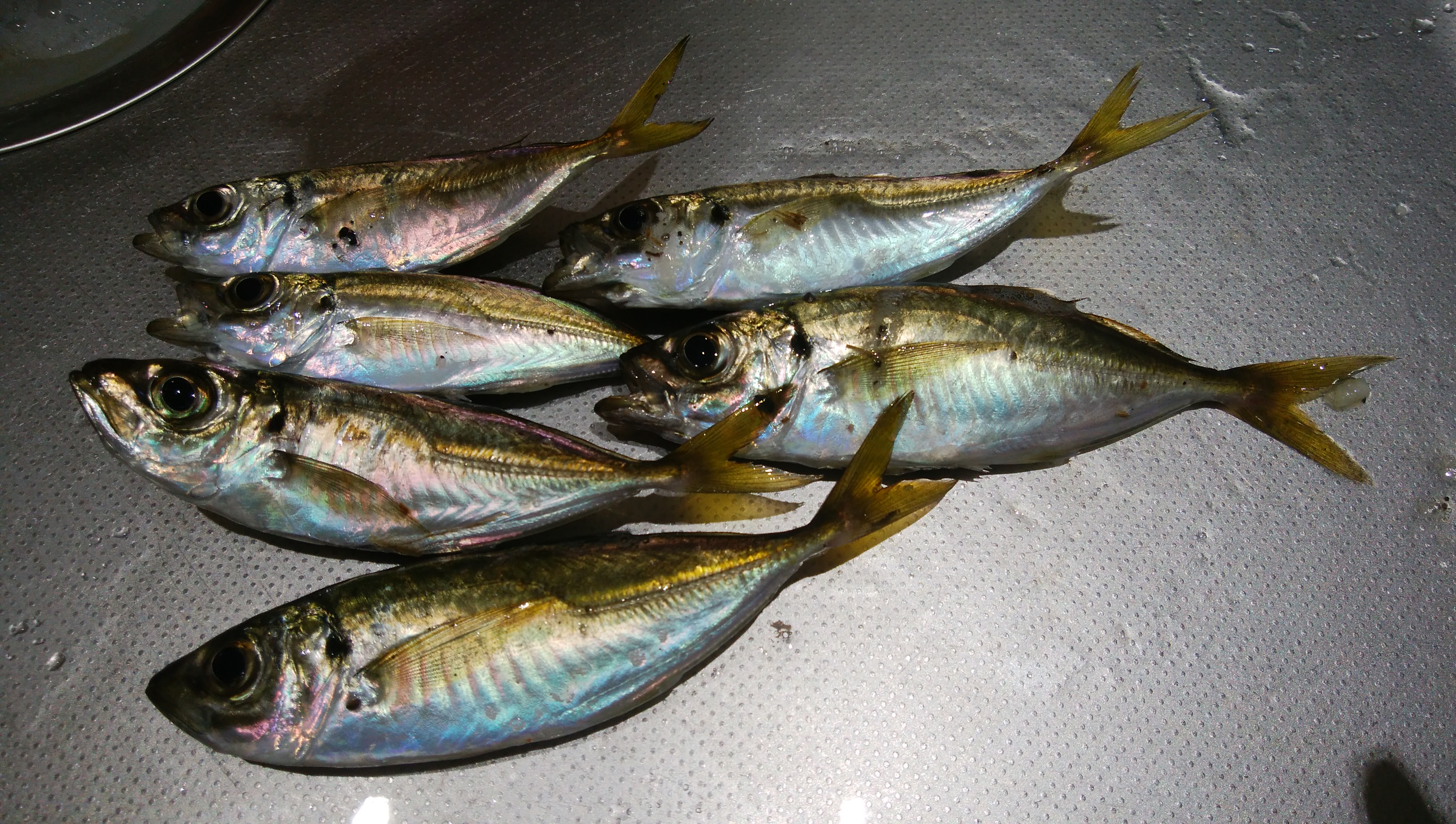 今シーズン初のアジングに行ってきました!いつもは鳥羽に行きますが、この日は五ヵ所に行ってきました。到着したのは17:00頃でまだ明るい時間からスタート!ポイントを探して釣って行きますがアタリは無しです・・・。徐々に暗くなりそろそろライト周りでポイントを絞り釣って行くと底付近で明確なアジあたりでしたが・・・フッキングできず・・・。同じように狙って行くと来ました!!久々のアジの引きです!!やっぱりアジングは掛けた時がうれしい!!!暗くなりアタリもコンスタントにで出しましたが・・・掛けるのが難しい・・・。結局は1時間ちょいの釣りで6匹でした!久々のアジのたたきはおいしかったです!!暗くなると少し寒くなってきました!上着は必需品です!ワームはマルキュー・活アジがやっぱり一番釣れます!!
