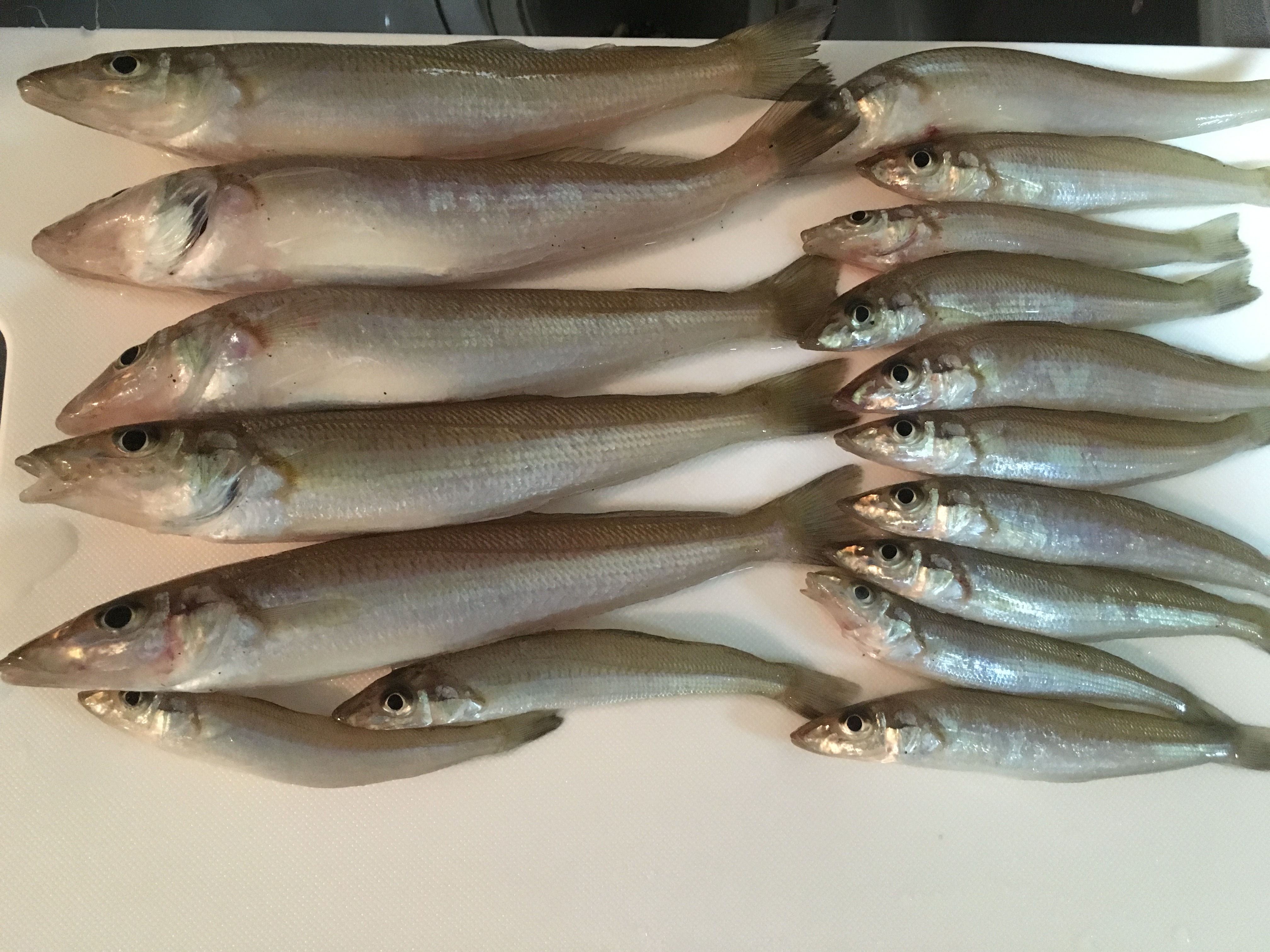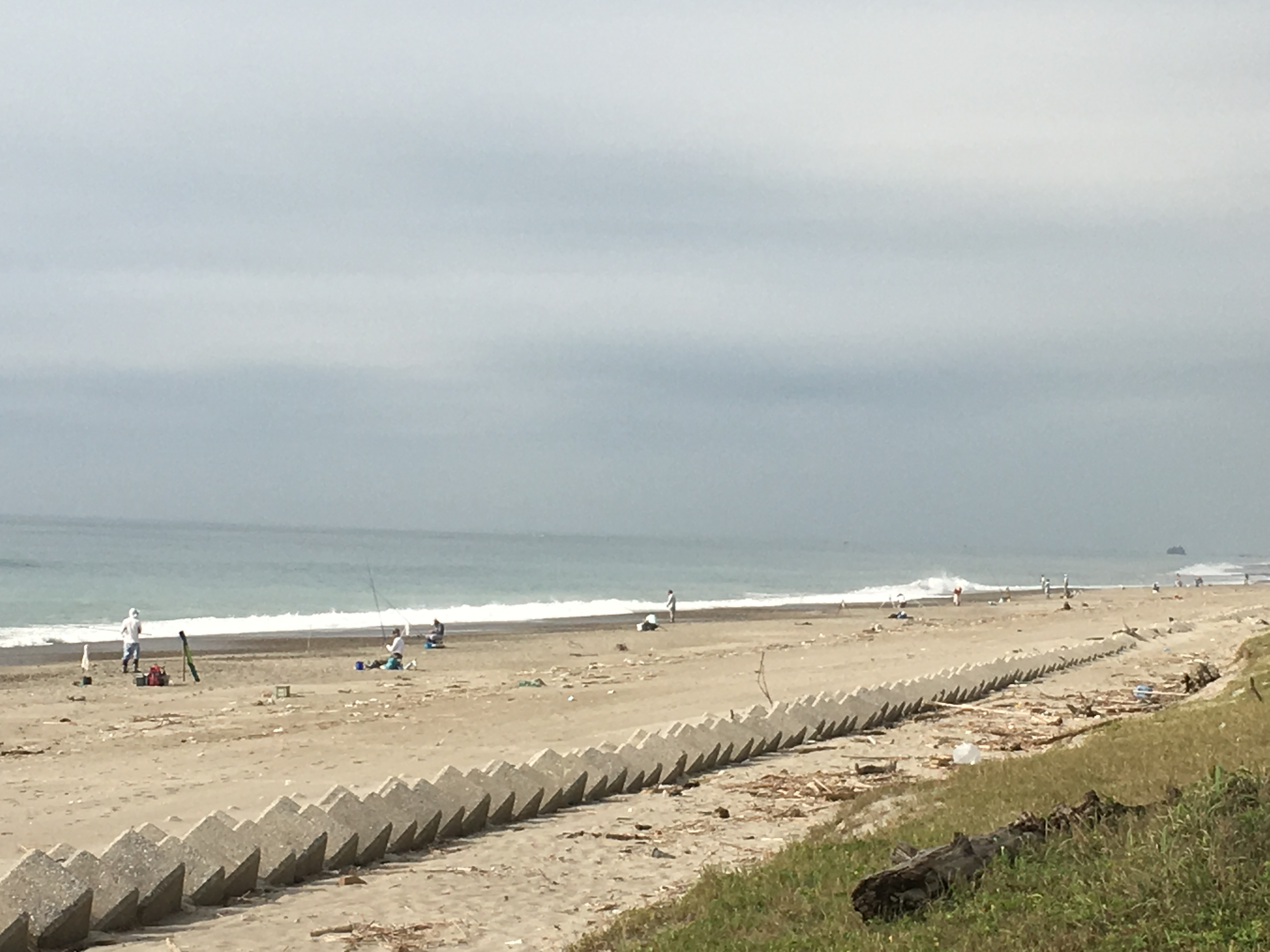 表浜の投げキスが好調でどのポイントでも、良く釣れている様子。前回竿の出せなかった堀切に行くことに。朝の6時過ぎにいつもよりは豊橋寄りのポイントに入りました。釣り開始直後に力糸が切れるトラブル…。しかも2回。新しい力糸に変え再開。しかし全然あたらない。周りを見ても釣れている様子がない。やっと来た!と思ったら舌平目。その後も全くあたらず、海も濁っているので移動を決断。大草に向かいました。9時過ぎに到着。見てビックリ!ずらーっと投げ釣りの方が並んでいる。遠くの方まで。さすが釣れてる一級ポイント。間に入れて頂き、投げるも、横の間隔が狭いので、どうしても右に飛ばし気味のわたしにはハイプレッシャー。加減してまっすぐ投げることに集中。何投かしてようやく一匹目を釣ってひと安心。濁ってはいるが堀切よりはマシな感じ。5色の終わりから4色の間であたり、近くではあたらない。この日は今ひとつのようで周りもぽつりぽつり。時合が来ることを信じて投げ続けます。たまに良型が釣れて、ブルブルと心地よいあたりを味わいます。20センチ弱ですが、太いキスです!良型が釣れたと思えばピンキスで両極端です。なかなか数が伸びず、潮もかなり引いてきて、下げ止まる寸前に潮が右に強く流れ、30号のオモリも右に流される。この時間は特に釣れなかったです。上げに変われば自合がくると予想し、粘ります。流れも緩みこれからと思いましたが、釣れるペースは変わりませんでした。夕方4時まで釣って17匹でした。丸1日やって20匹に届かず…良い日に当たりたい!