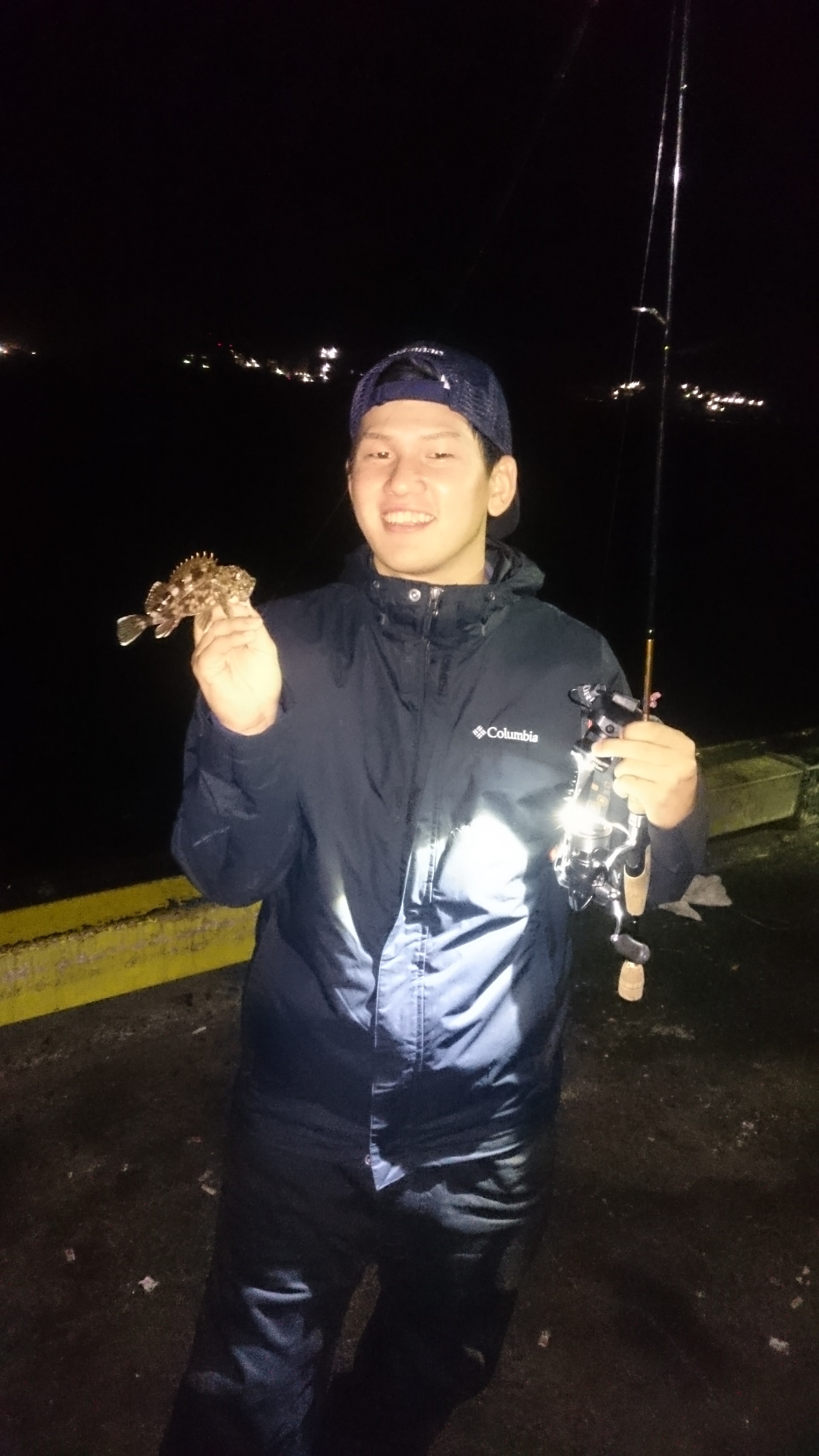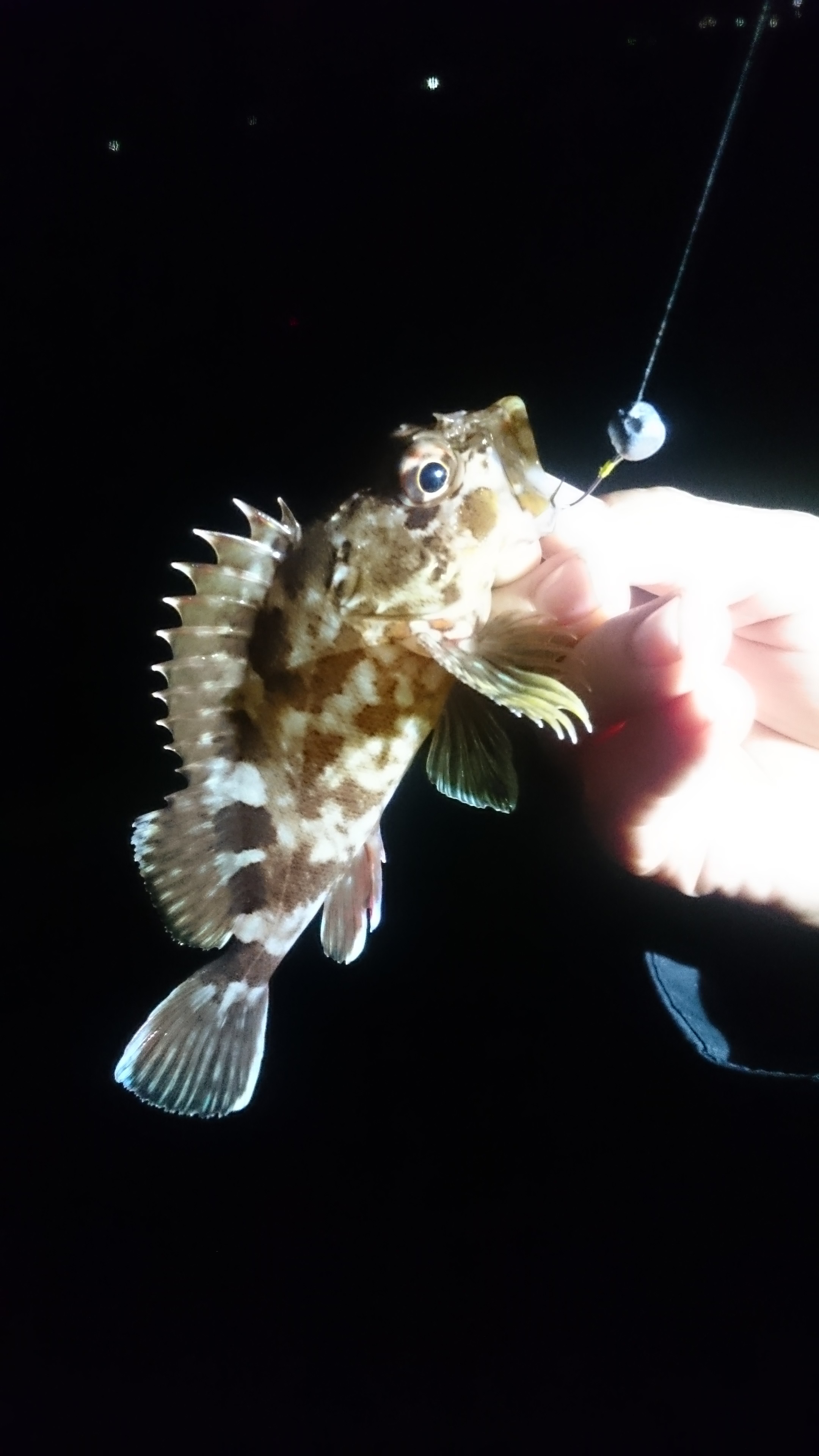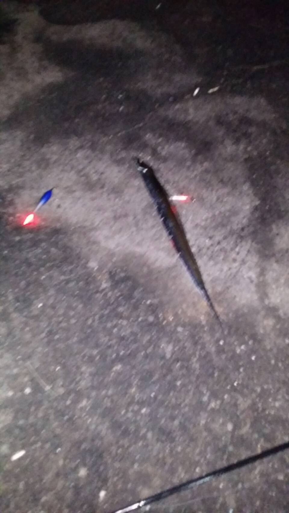 仕事終わりに清水港にタチウオ調査に行って来ました。松本くんが先行して釣りをしていて、私が後からポイントに到着すると1本釣り上げていました。サイズは指3本くらいでした。何箇所か港内を移動しながら釣っていたようで、私が到着する少し前に釣れたそうです。餌はキビナゴを使っていました。私も電子ウキにレインボーの点滅タイプの水中ライトとワイヤー仕掛けをセット、餌はサンマを使いました。常夜灯付近にキャスト。状況は向かい風の強風、雨、海はウネリがありウキは見にくく最悪でした。潮流が早くウキがあれよという間に流されるので入れ直しながら待っていましたが、無反応。そうこうしているうちに仕事を終えた鈴木さんも合流、何度かウキが沈みアワセるものらず・・・タイミングが難しいです。その後は何も起きず、松本くんが最後に虫ヘッドでヘチを狙ってカサゴを釣り上げ納竿しました。隣でやられていた方もタチウオを釣っていましたが、活性は低そうです。またリベンジします。
