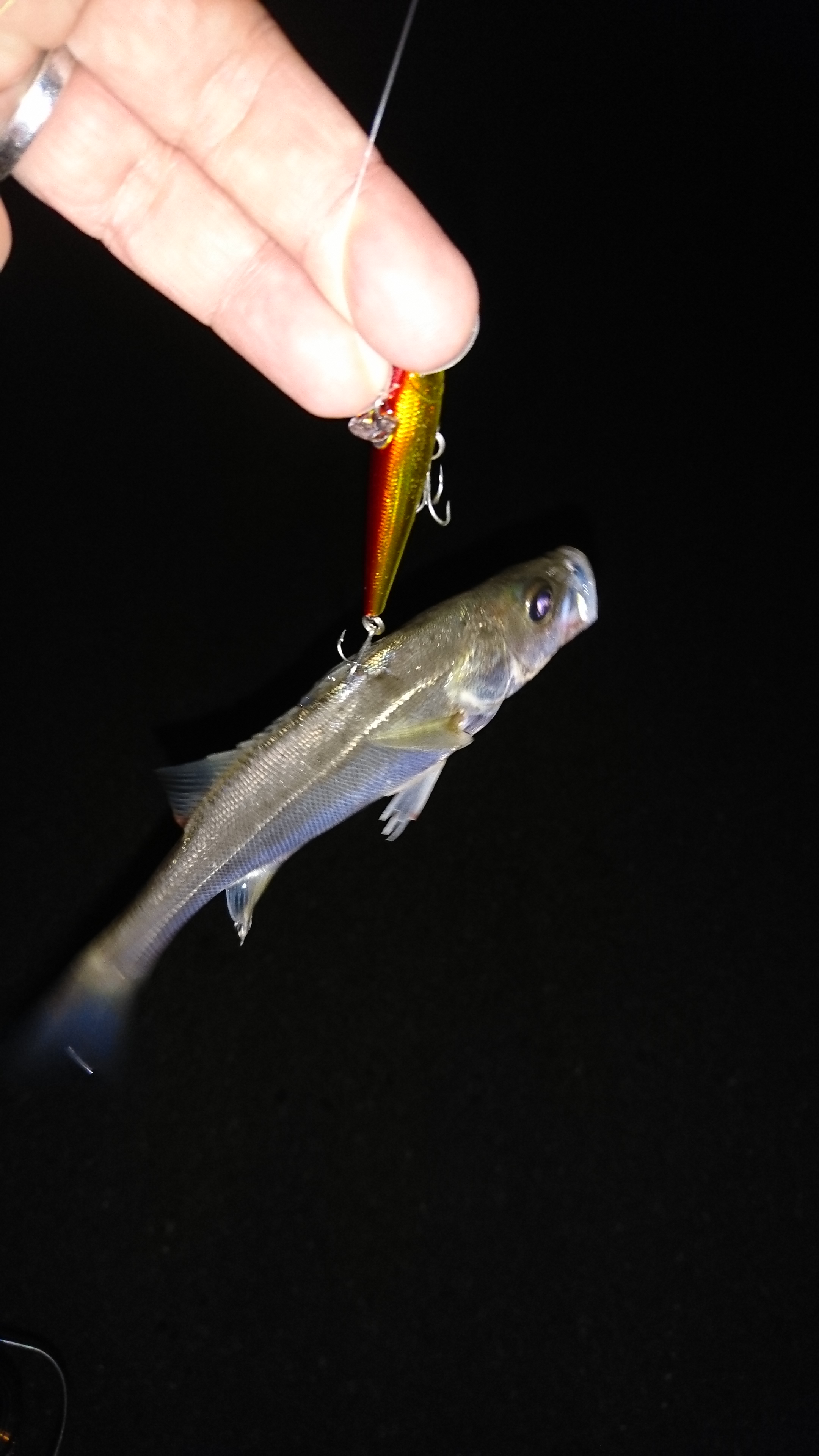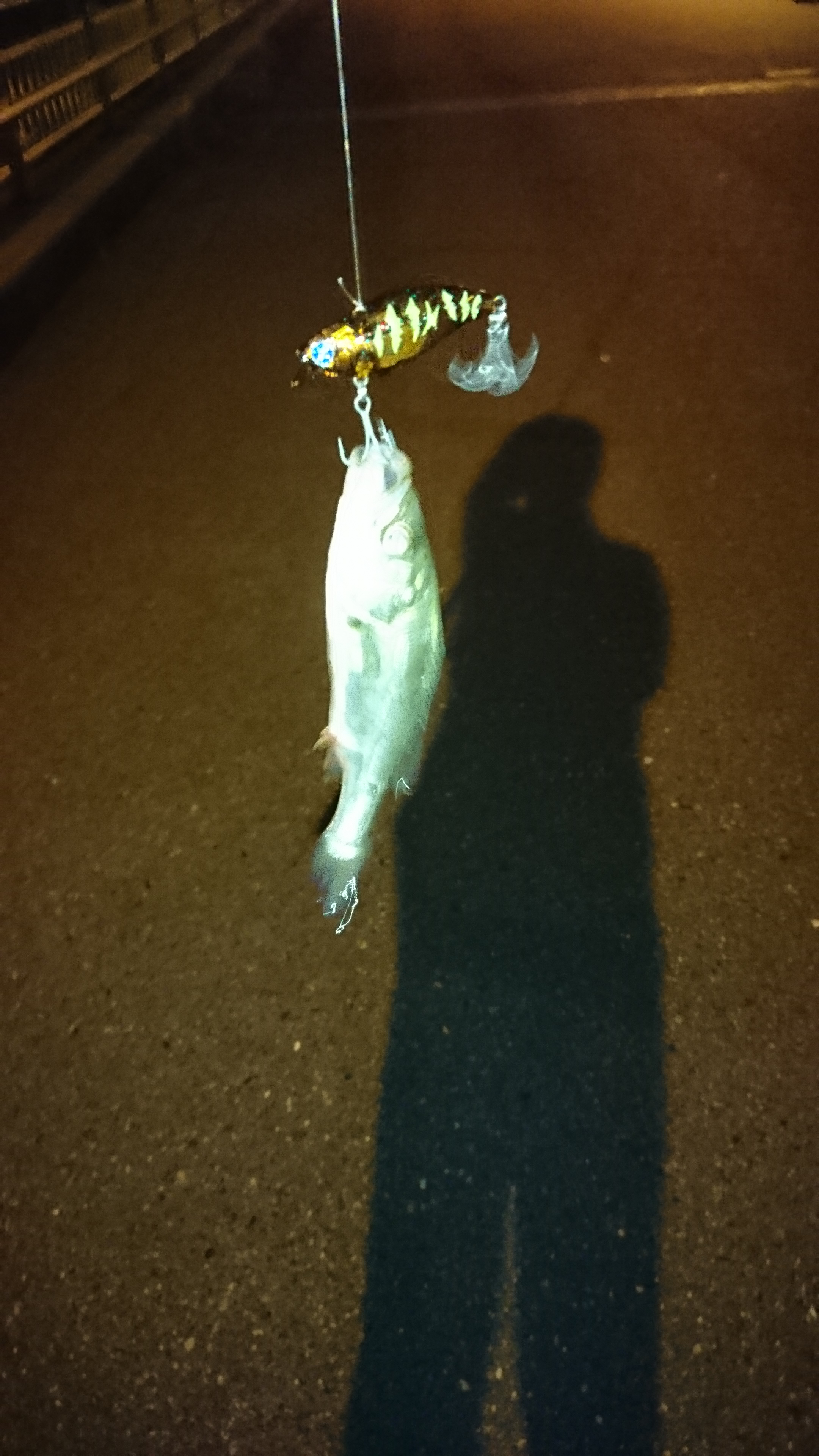 仕事帰りに5回狙いましたが、釣れるのは20cm前後のセイゴサイズのみ。大きなボイルも見かけるので、なんとかそれをとれるように頑張ります。今のところヒットルアーはシリテンバイブ53・ナレージ50・ローリングベイト55です。