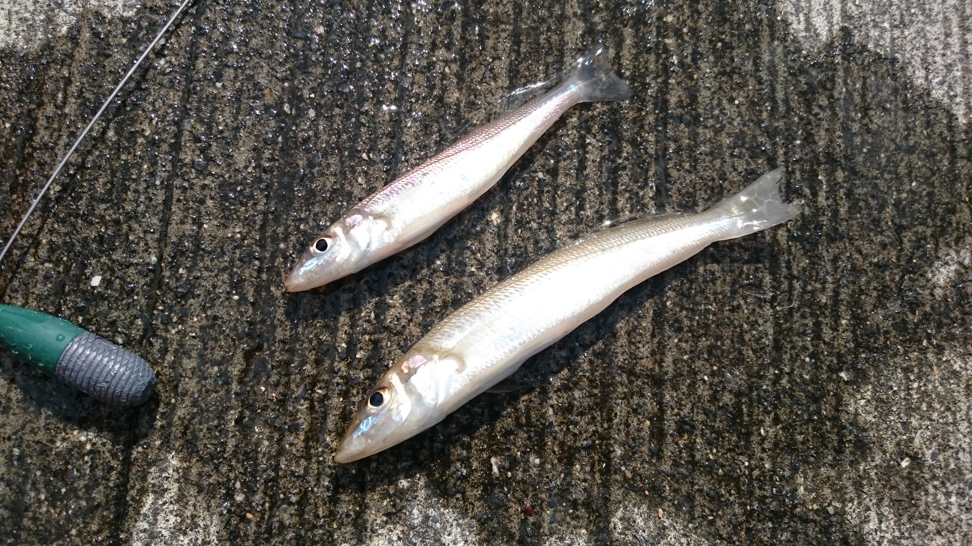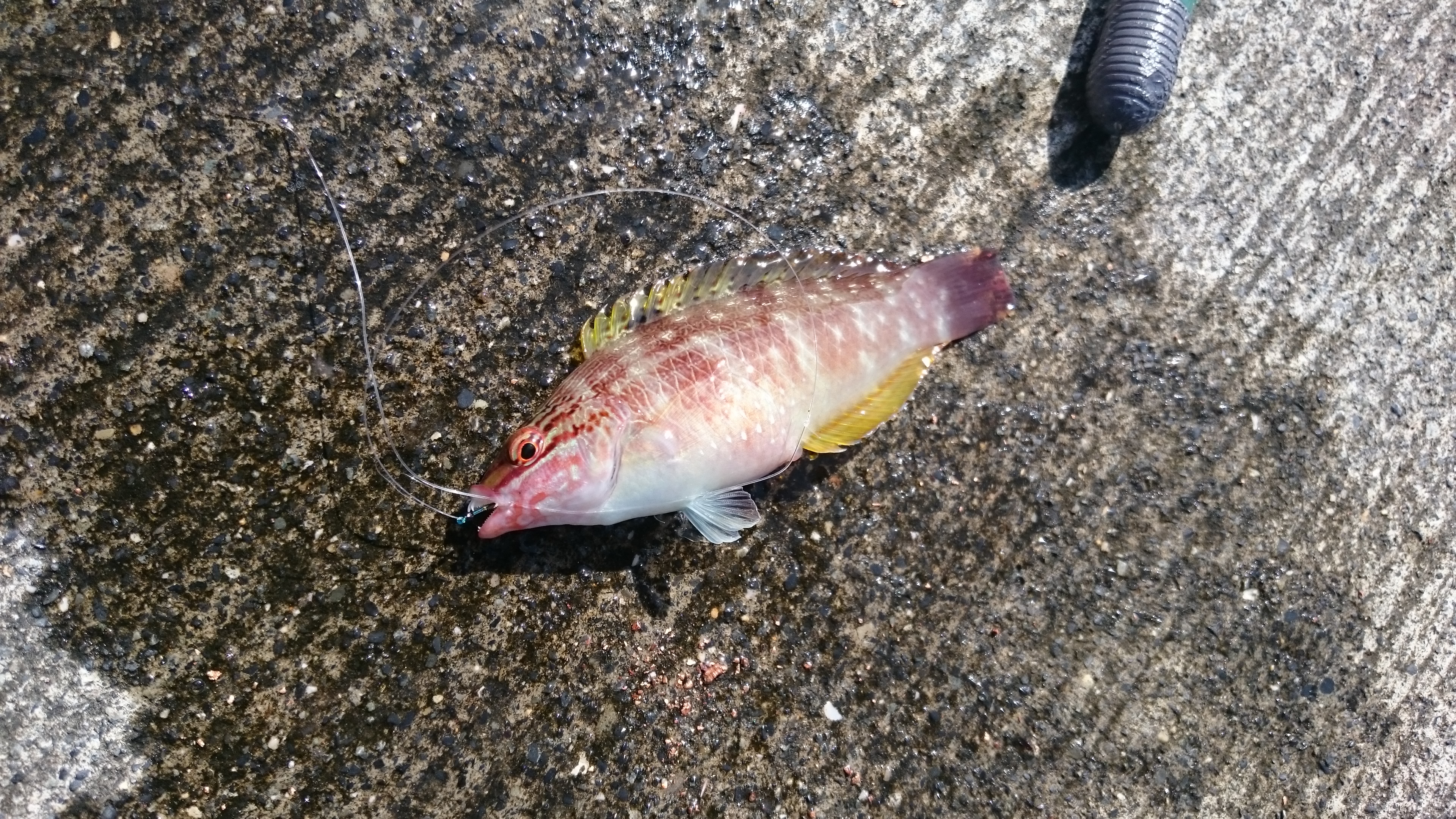 手前は岩礁帯でゴツゴツ。奥の方は砂地。遠投してゆっくり誘ってくると待望のアタリ。