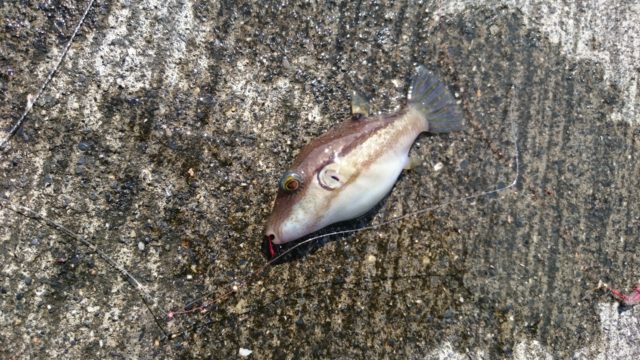 前日釣れたポイント付近に遠投~。探れど探れどキスからの反応はなく、この日もベラとフグの猛攻に・・・。