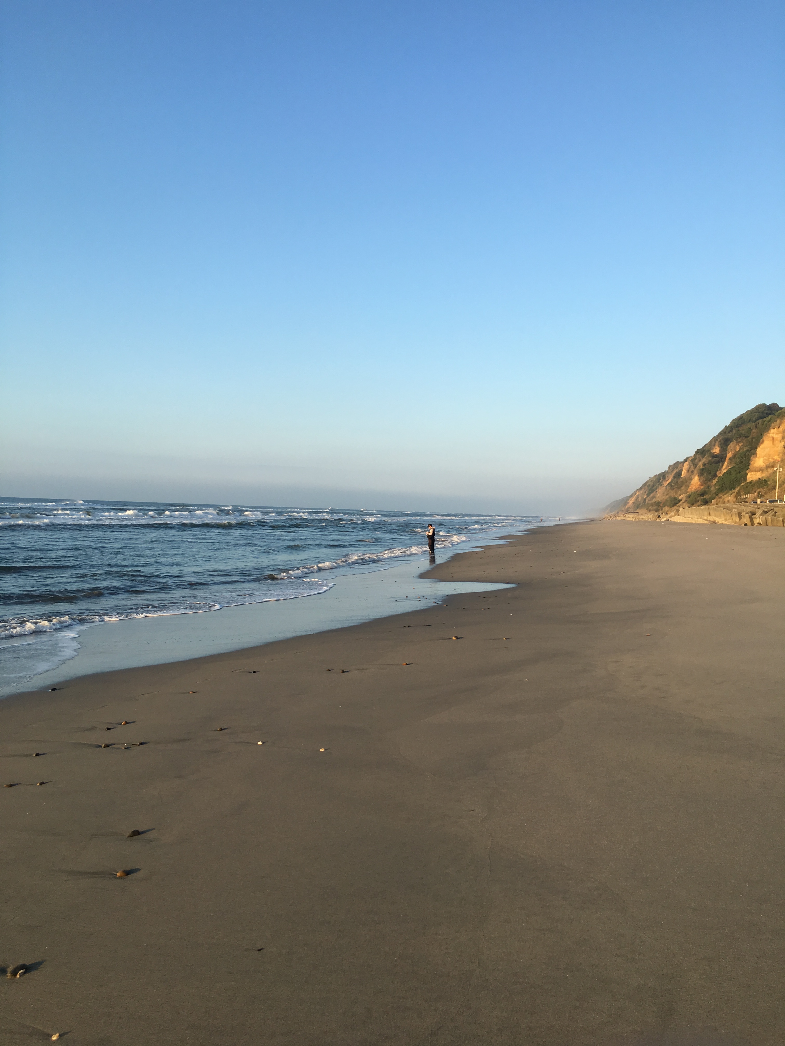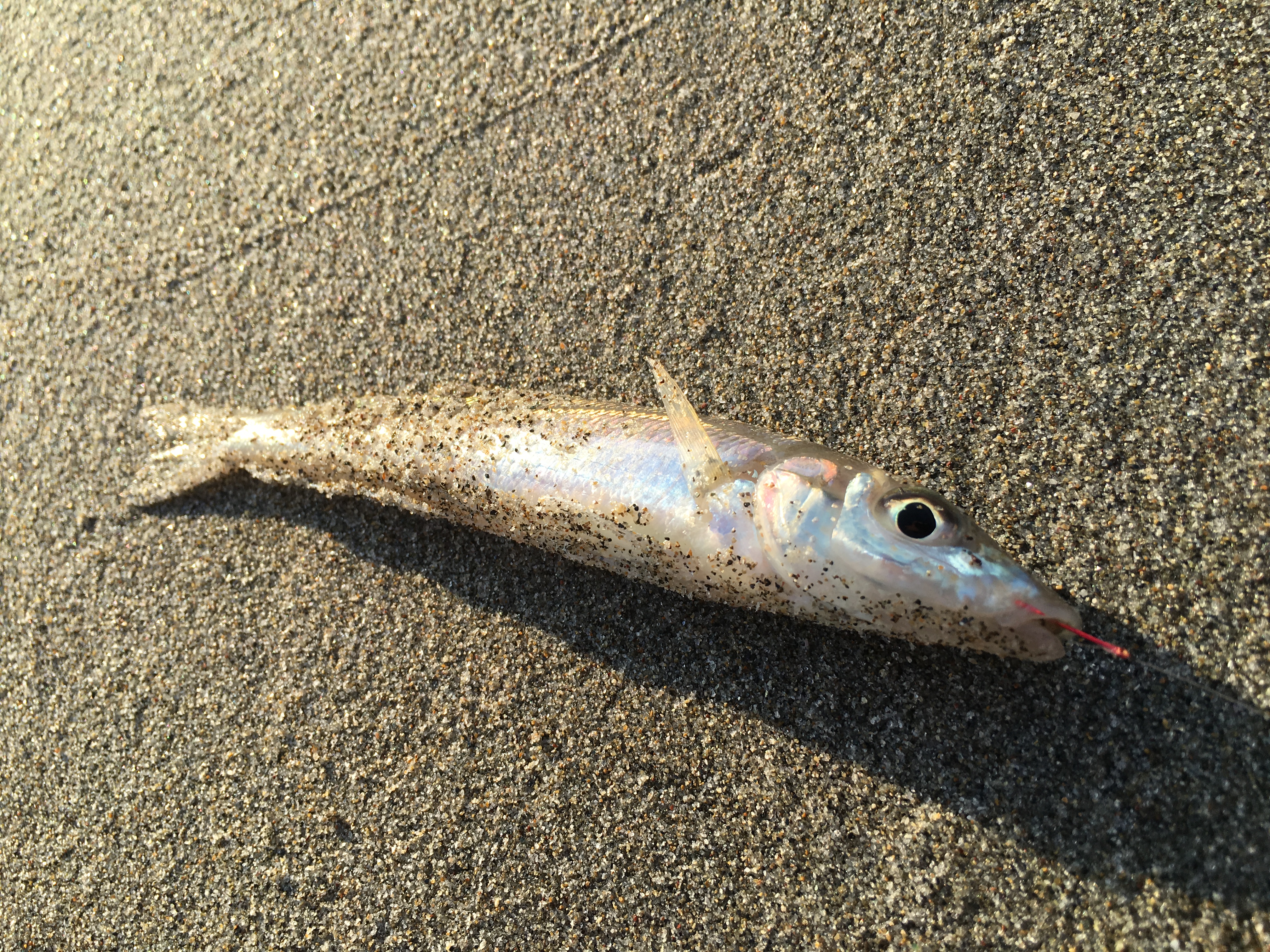 表浜の投げ釣りでまだ釣りをしたことのないところに行きたく、今回は六連で竿を出すことにしました。朝現場に着くと、ルアーの方が2人ほどでサーファーが多い日でした。あんまり釣れてないのかな、と不安になりつつ投げる。数投した後、待望のアタリが!その後もポツリポツリあたるが5色から4色の終わりで、近い距離では全くあたりません。今回から天秤をタングステンのデルナー天秤を使い、だいたい5色は出切るようになりました。あたるポイントをより丁寧に竿でサビき探りました。それでも厳しく昼までで8匹でした。後から来た投げ師にお話しを聞くと、すでに自分と同じくらい釣っていました。観察しているとあたるポイントで自分よりももっとゆっくり、少しずつサビいていました。