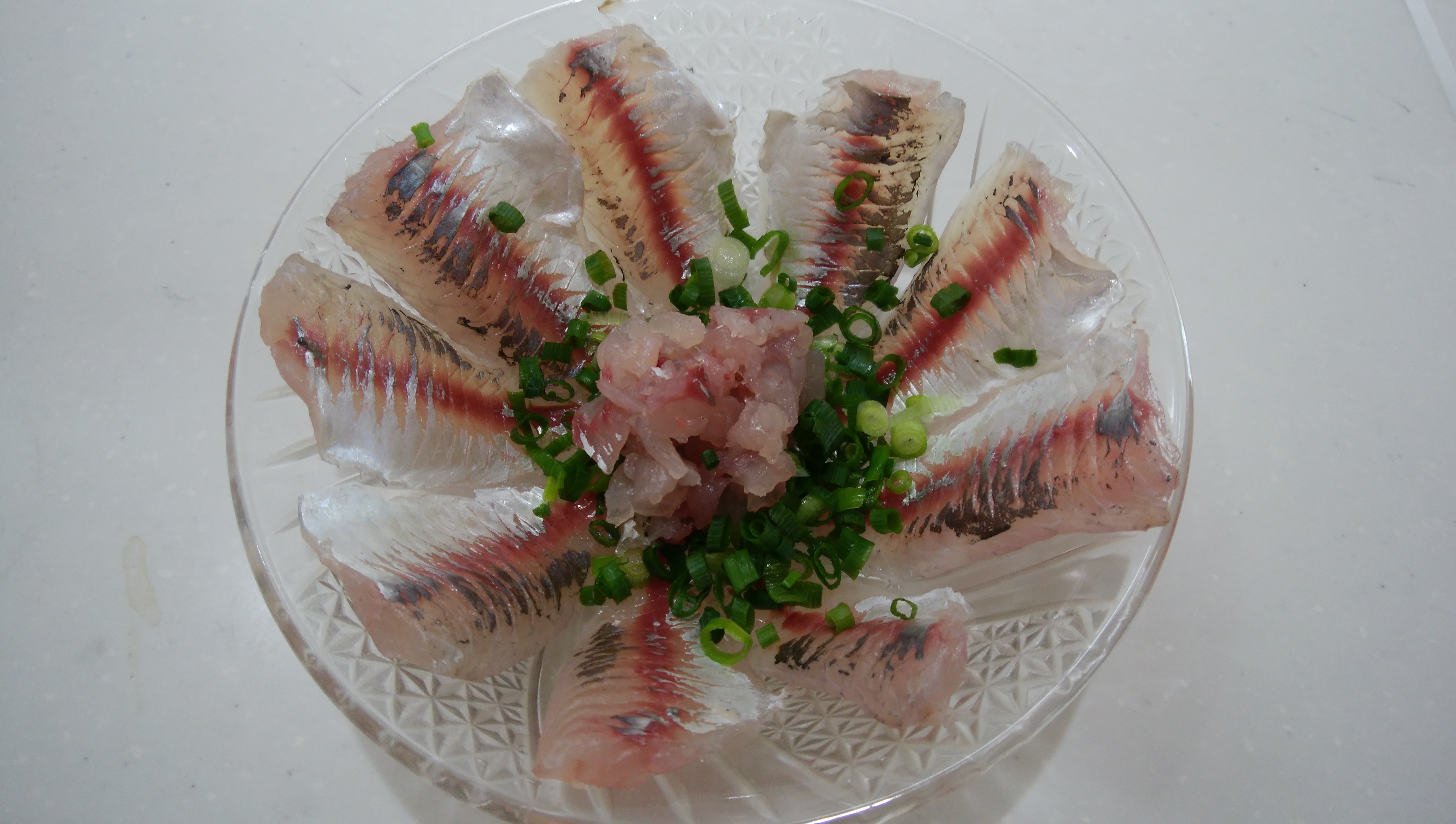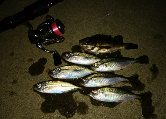 アジが食べたい!!と思い・・・鳥羽にアジング!!少し寒くなってきましたが、21:30家出開始です!いつものポイントから入りますが、エサ釣りの先行者が入っておりポイントをずらしてスタートしました!風も無く釣りやすいのですが・・・アタリが・・・。0です・・・。たまに水面でピシャとアジが・・・。時合い待ちか?その後1アタリ1匹GET!!したものの・・・そのアタリのみでポイント移動を決断!少し車を走らせて道沿いの外灯ポイントに入りました!ここで1投目からHIT!!!良く引きます!!!でも・・・引きが違う???上がってきたのはメバル!!もうすぐこの子達に遊んでもらう時期になってくるなぁ~と思いながら釣って行くと・・・潮がゆっくり左へ動き出したタイミングでアタリが連発し、アジ5連チャン!!!オカズ確保出来たので終了しました!アジは片身におろし皮をとりショウガ醤油で食べるのが最高です!この日は、たたきも作り美味しかったです!ちなみに、この日のワームは、活アジでした!やっぱりこのワームはよく釣れる!!!