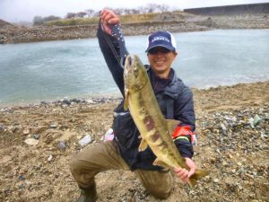 私たちは下流側からスタートし中村黄金店 川原田店長に早速ヒット!!