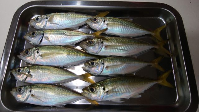 前日に良く釣れた為またまた行ってきました!この日は、いつもより少し早い20:30分出発!21:00頃~スタート!久々にT店S氏との釣行!前日のポイントから入りますが、潮がなさすぎます・・・。それでも試しにキャスト!1投目からアタリはありますが・・・掛けれません・・・。何回目かのアタリでGET!!!ここでは4匹GET!!!そしてアタリも無くなったのでポイント移動!ここでは堤防からの釣りで高さもあるので座ってのんびり釣りです!なかなかアタリが出ませんでしたが、潮が動き出してポツリ・・・。ポツリ・・・。ここでも4匹GET!!!そして場所移動!最終ポイントです!が・・・ここでは1匹GET!!!トータル9匹で終了しました!S氏は7匹!勝負してたわけではありませんが・・・暗黙の負けられない戦いがある!(笑)この日は、ワームは活アジ!!(ピンクパールグロー)よく釣れるワームです!!この日も、刺身・たたきでおいしく頂きました!!