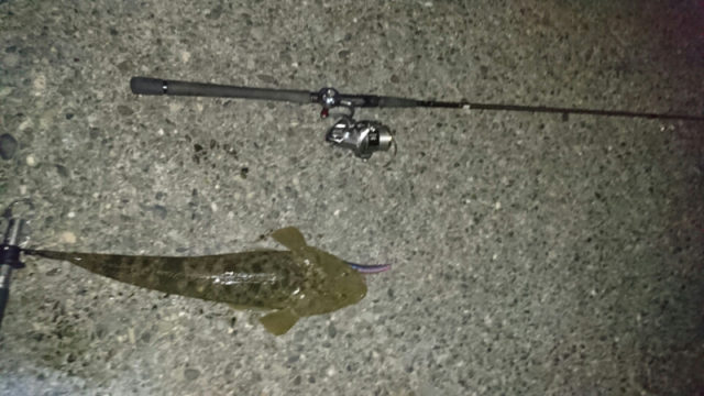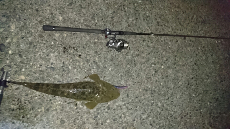 投げるとデスアダー+フラットシンカーで50ちょっとのコチが釣れました。