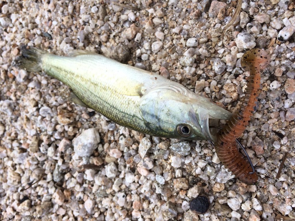 先輩オススメのを教えてもらい琵琶湖にバス釣りに行ってきました。当日は北風が10m近く吹いていたので、西岸の松ノ浦の風裏のポイントへ。50mキャストすれば水深が15mほどになる急深のポイントを三つ又ヘビキャロで探っていきました。開始3投目で早速小バスがヒット!いい感じかと思いきや後が続かず…。日曜日ということもあって湖岸にはズラーっと釣り人が並んでいましたが誰も釣れていない様子でした。真野川の河口や琵琶湖大橋下のウェーディングポイントに移動したりしてみたものの、行きま爆風で断念せざる追えず、結局松ノ浦のポイントでねばることに。完全に日が沈むまで探り続けましたが、アタリなく終わってしまいました。琵琶湖といえど難しい!!