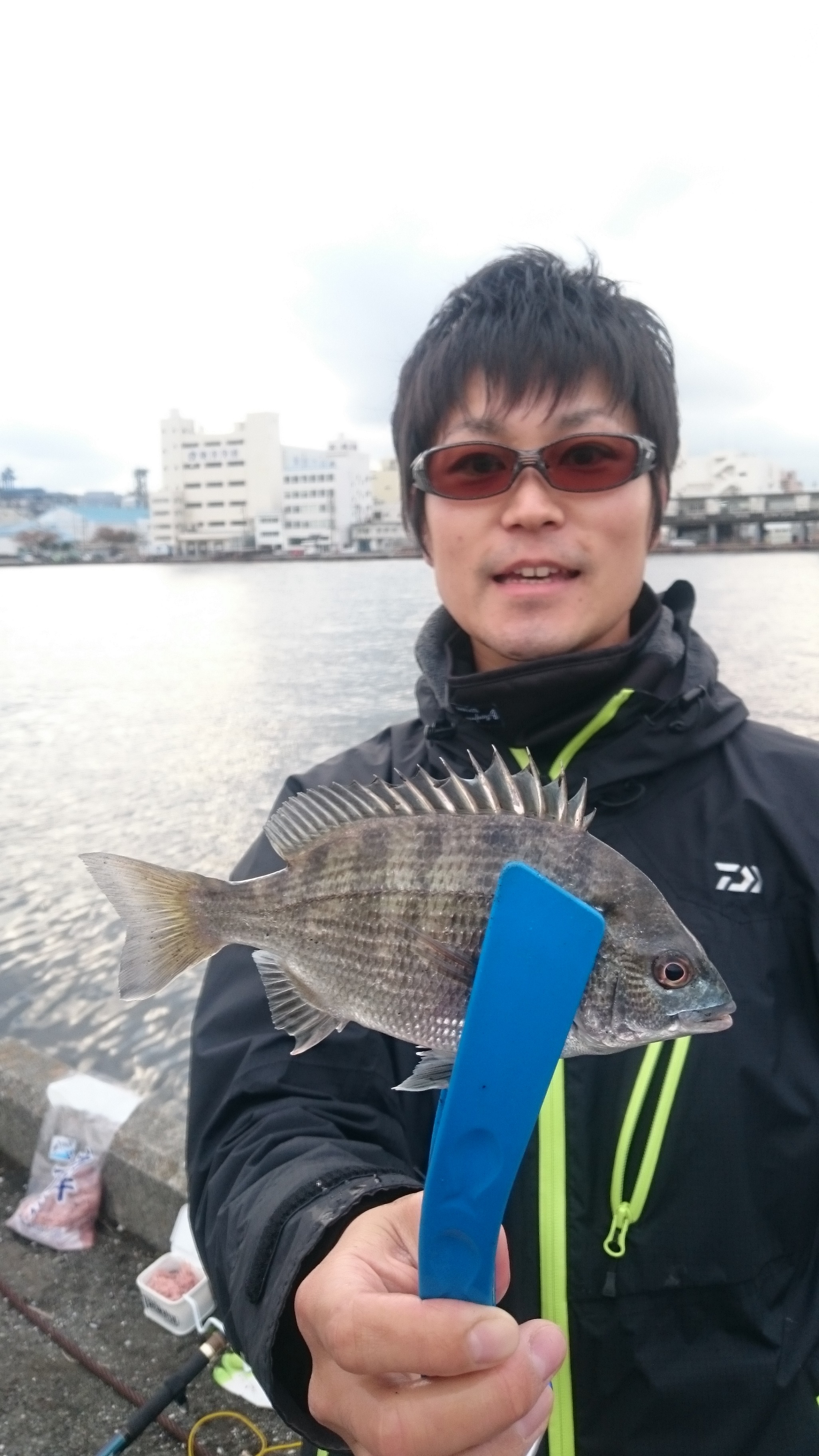 いつもの清水港に午後からの釣行でチヌ、グレ狙いで磯竿を出してきました。コマセはオキアミに米糠、チヌパワーを混ぜて作りました。刺しエサはオキアミ。ウキ下は底をちょっと切るイメージで設定しました。まず掛かってきたのは小さいカサゴ!清水港はカサゴが多いです。その後は1時間くらい何も無く、ようやくコマセが効き始めたのか、ウキに反応が出るようになってきました。ウキが瞬時に潜り見えなくなりアワセると、小気味いい引きで上がってきたのはチンタくんでした。20cmちょっとでした。次は仕掛けを投入してぼーっとよそ見をしていると、ウキが見えなくなっていました。慌ててアワセるとさっきより引きました。23cmくらいでした。その後もアタリが続き18~23cmくらいまでを4枚釣ることができました。外道でカサゴとコチ科の魚が掛かりました。外道だとウキはゆ~くり沈みますが、小さくてもチヌが掛かると瞬時にウキが消し込みます。さらに、磯竿が弧を描くのは気持ちいいです。フカセ楽しいです。