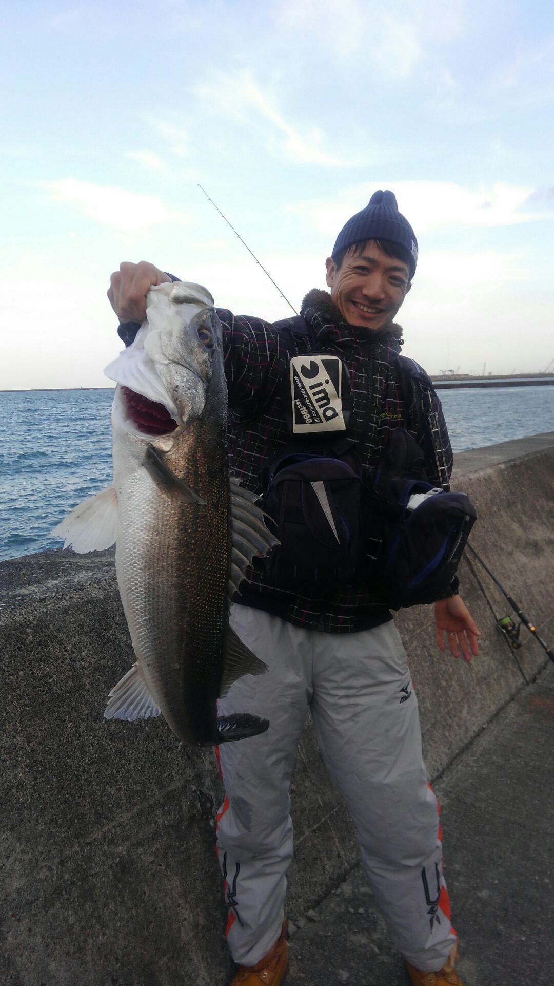 同行者に、大きなシーバスがヒット!