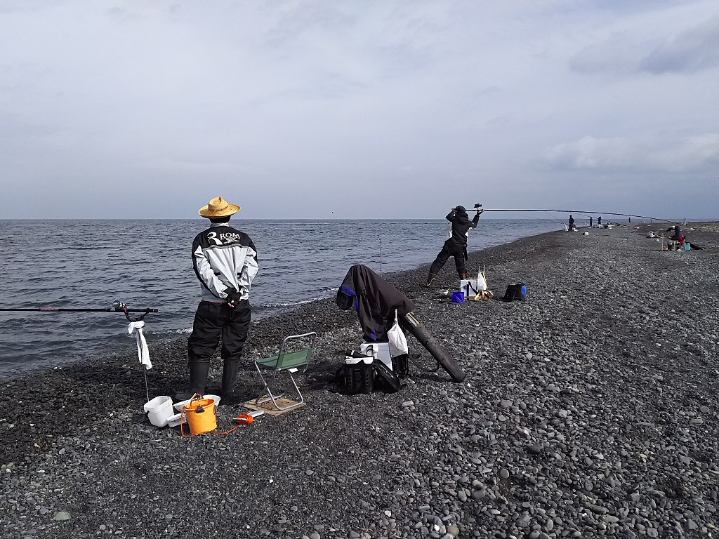 三保海岸で戸塚さんと鷲巣さんが遠投カゴをするというので、私も練習のつもりで行って参りました。