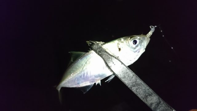 鳥羽の今浦方面でアジがイレグイしましたよ~~~~!と情報をいただき早速、現場に直行!いきなり1投目からアジをゲットし♪ これは今日は大漁節♪ と思いキャストをくり返して間もなく・・・・・・・・・。ポツポツと雨が降り出したかと思う間もなくレインが水滴だらけになり・・・・・・ストップフィッシング。6匹釣って終了となってしまいました。今回、釣り時間が短かったのですが雨が降りしきる中でも気づいたことがありました。アジング専用のエステルラインですが 0.2号のルミナシャインのイエローカラーを使い灯りの効いた外灯下でのアジングで手元まで感じない自分の方に向かってくるようなテンション抜けのアタリがラインが見えることで判るようになり釣果アップに貢献してくれました!本当によく見えるカラーのエステル系ライン!おすすめします。