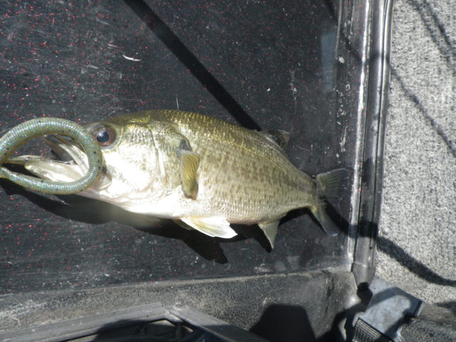 中島チーフはこの日最大の40弱までの数釣りを楽しんでいました。私は違う反応を確認するため、ダウンショット投入。しかし釣れてくるのは子バスが釣れるのみ・・