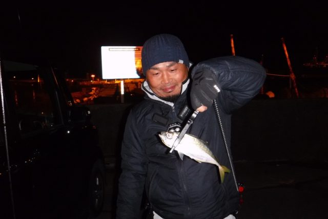 いつものように仕事帰りに清水港をあちらこちら釣果を確認しておりますと、袖師で石井さんに遭遇しました。聞けば小アジが2尾ヒットするも、その他はショートバイトでフッキングしないとのことでした。私は邪魔にならない様、反対側でカマスを狙います。開始から10分で1尾、すぐに2尾目もキャッチしたところで石井さんが26cmほどの立派なアジをキャッチしました。それまでのショートバイトが嘘だったように、一発でフッキングしたとのことでした。その後もカマスゲームを再開しましたが、そのアジを見てしまったので、すっかりそちらが気になります。午前1時を過ぎたところで石井さんはご帰宅とのこと。そこでポイントに入れて頂きキャスト。30分ほどワームを替えるもののバイト無く、石井さんはご帰宅。その10分後、アジングビームのグローピンクに替えたところでコツンとバイトがあります。少しずつキャストの方向を替え、レンジを替えていると、時折バイトはあります。石井さんがおっしゃっていた通りショートバイト連発です。そして、午前2時、私もそろそろギブアップかと考えていると、カウント7でリトリーブを始めた瞬間にいきなり大きなバイトと同時に明らかにフッキングしました。これを慎重に取り込むと24cmほどの、実に久しぶりのアジでした。その後20分程延長しましたが、この1尾に留まりました。次回も頑張ります。