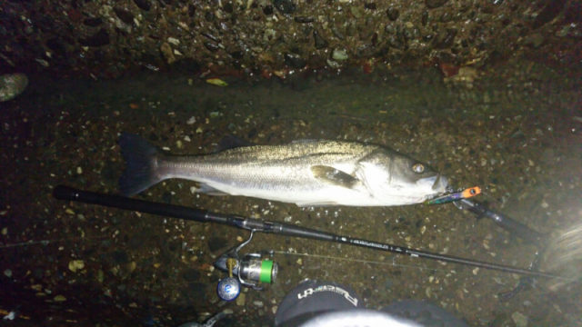 とりあえず薄暗くなる頃から投げ始め、荒波の中でかっ飛び棒のサラシホタルを漂わせる様に引いていると、ヒットしてゴリ巻きで寄せて70cmちょっとのシーバスをキャッチしました。その後は風も波もとても釣り出来る状況ではなくなり、今回の新潟ハタハタパターンのシーバス釣行は終了となりました。