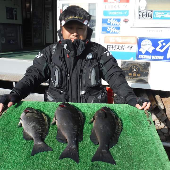 2017年初釣り!昨年と同じく紀伊長島の磯釣りです!目的は、初日の出と大グレ!この日は、15名ほどで出船!ウワテ周りだと思っていましたが、大島方面に!乗った磯は初の磯です!常連さんと4人で乗りポイントも分からないので空いているポイントでスタート!雰囲気はムンムンにあります!サラシが少し気になりますが、良い感じで仕掛も重ための3Bで際狙い!少しして1つの目的である初日の出!最高に綺麗です!あとは、グレを釣るだけ!!と思い釣って行きますが、エサが時よりかじられる程度で、丸ボーズ・・・。波っ気も無くなりベタ凪・・・。朝一に後ろでしていた方が40cmオーバーを2枚釣っていたもののそれ以外は・・・。それぞれ少しづつポイントを変えて、自分も沖向きにポイント移動して際狙い!ゆっくりシモらせていきラインがゆっくりと張っていく・・・!そんなアタリで釣れたのは38cm口太グレ!その後は、カワハギのみで終了でした!そして2日目!乗った磯はまた初の磯で前日の向かいの磯です!前日は40cmオーバーが3枚出たとのことです!船着きでスタート!際狙い!朝一1発針外れ・・・。そして少しして微妙なアタリで合わせたが、これもまた針外れ・・・。悪い流れ・・・。気を取り直し際狙い!ここでゆっくりとウキが入り上がってきたのは35cm!そして42cm!それからはアタリも遠のき、ド遠投放置釣り!ラインが張って行く!ビッシ!合わせると良く引きます!40cm!2日目は3枚の釣果でした!