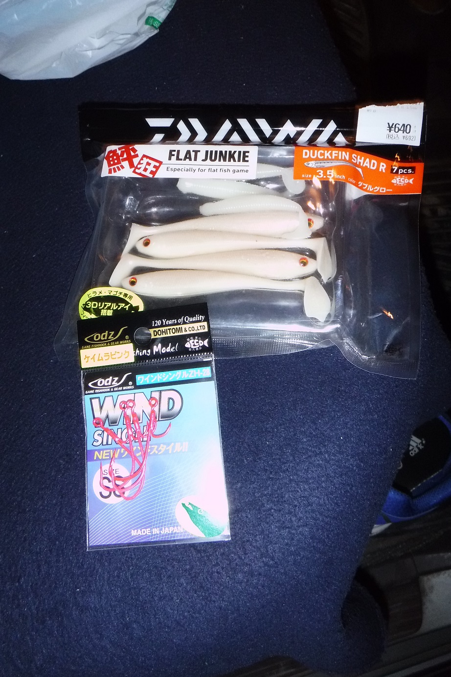 日の出埠頭から江尻埠頭を見て、袖師に着くといつものメンバーでタチウオを狙っています。私も新たに購入したワインドシングルのケイムラピンクのフックを試してみようと釣り開始。数投して5分ほどが経過したところで待望のヒットです。しかし、引きの力強さが・・・「カマスかな?」などと言いながら寄せてみると、幅が指2本ほどのタチウオでした。この後堀池さんや皆さんで1尾ずつ追加して帰路につきました。タチウオは相変わらず見えます。時合いもあるようです。干潮と満潮を考慮しつつ、今しばらく狙ってみます。