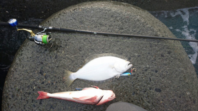 朝一はデスアダーとリザスターを投げていましたが全く当たらず、一時間半位経ってからリジェット40gに変えるとかなり遠くでアタリが出で、今日はかなり遠くに投げないと当たらない事に初めて気付き、一番いい時間を無駄にしてしまいましたが、頑張ってリジェットを投げて底を取り10回ほどゆっくり巻いて再び底を取るのを繰り返していると、掛かりホウボウキャッチしました。